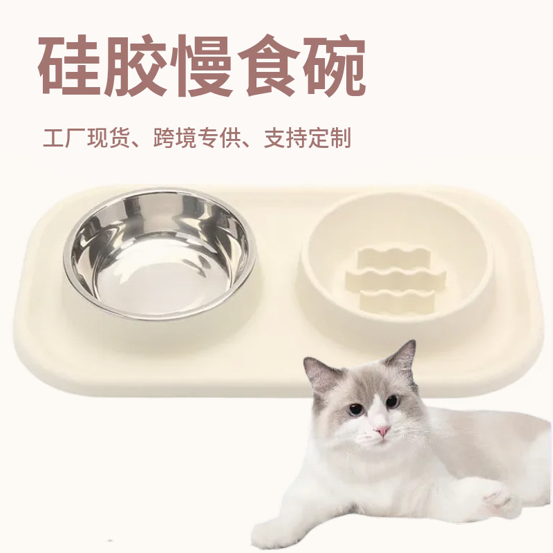 느리게 먹는 스테인리스 이중 그릇 애완동물 그릇 애완동물 식기 애완견 그릇 고양이 사료 그릇 고양이 그릇 고양이 느린 식사 그릇스토어 가기