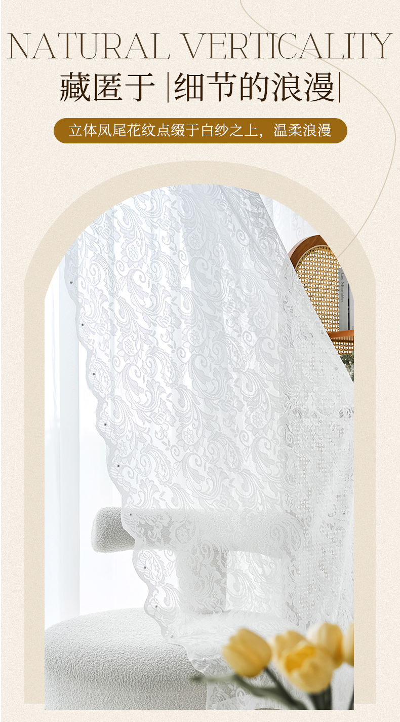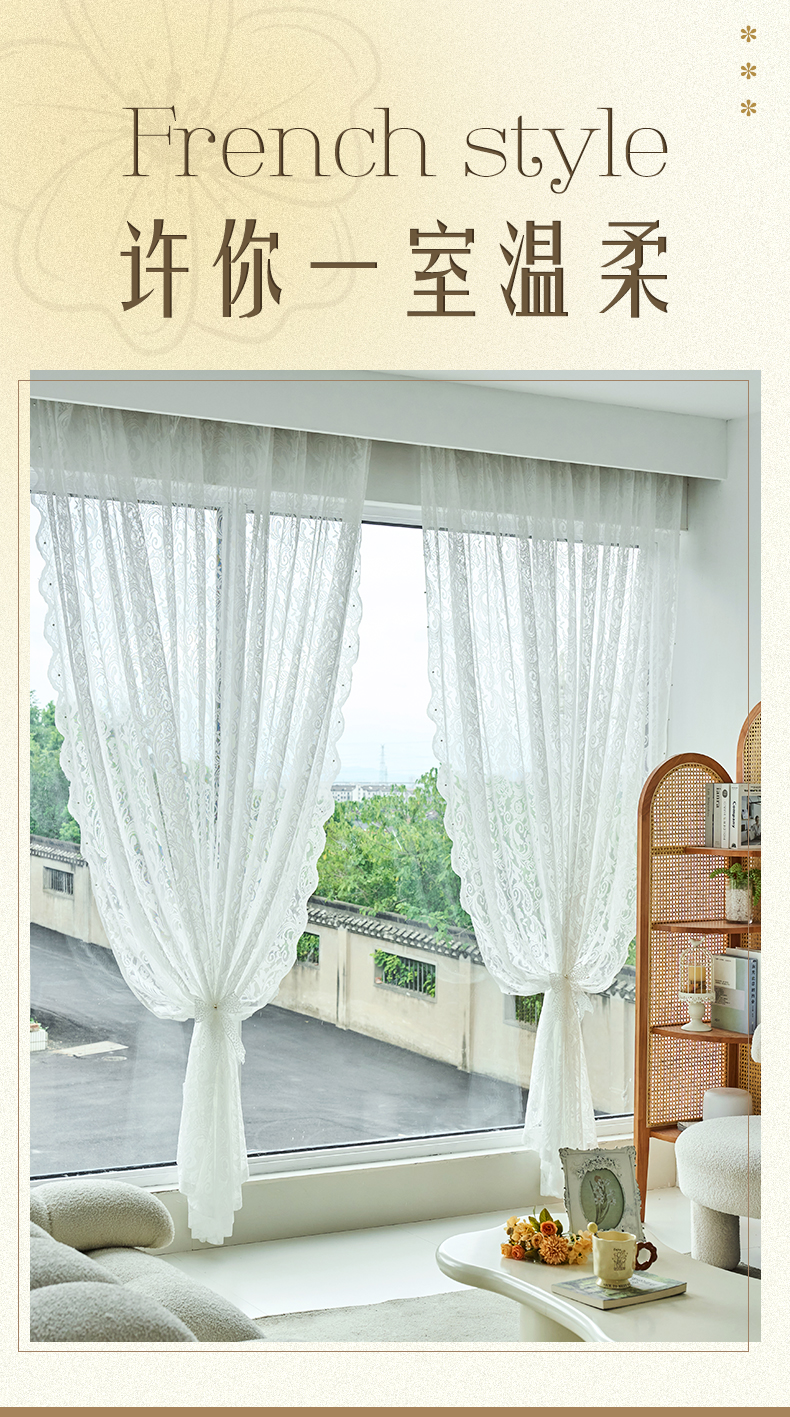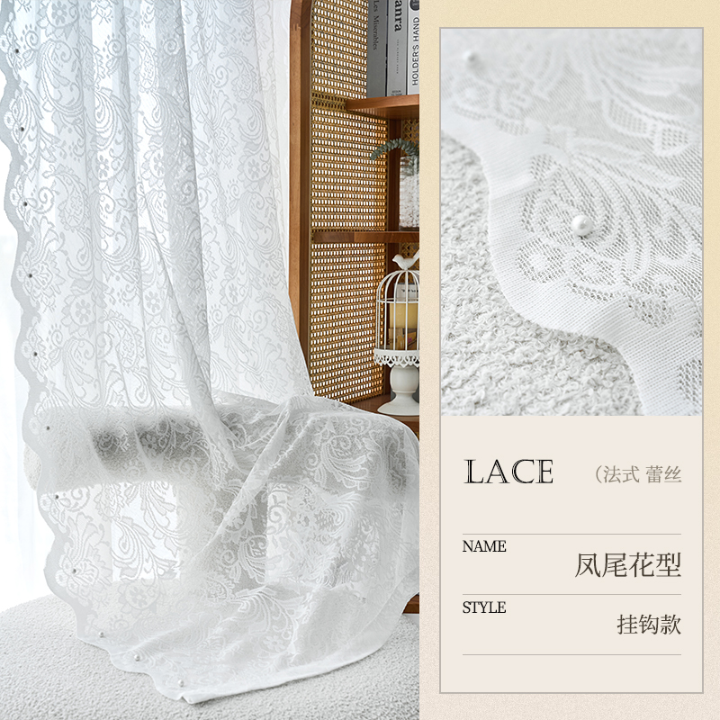 레이스 창 스크린 펀치없는 거즈 커튼 흰색 로드 벨크로 커튼 공주 스타일 장식 프랑스어 벌크 홀 창 침실 발코니스토어 가기