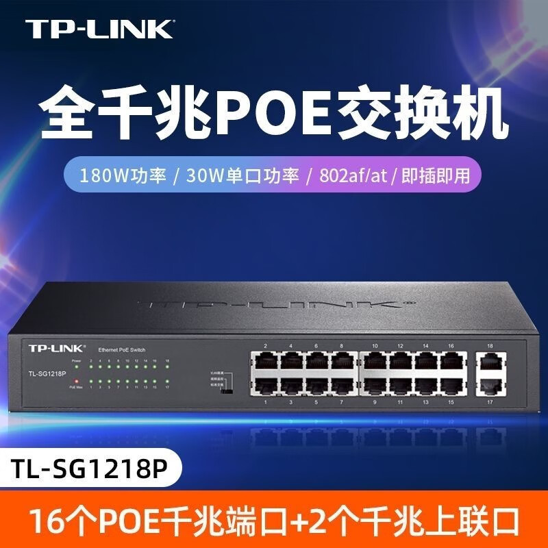 TL-SG1218P是TP-LINK自主研发的全千兆非网管PoE交换机,其中1~16号端口支持PoE+功能,符合IEEE 802.3af/at标准,单端口PoE功率可达30W,整机PoE输出功率为180W。支持标准交换、视频监控、VLAN隔离三种工作模式。作为PoE供电设备,能自动检测识别符合标准的受电设备并通过网线为其供电。 即插即用,使用简单方便,适合酒店、校园、厂区宿舍及中小型企业组建经济高效的PoE网络。