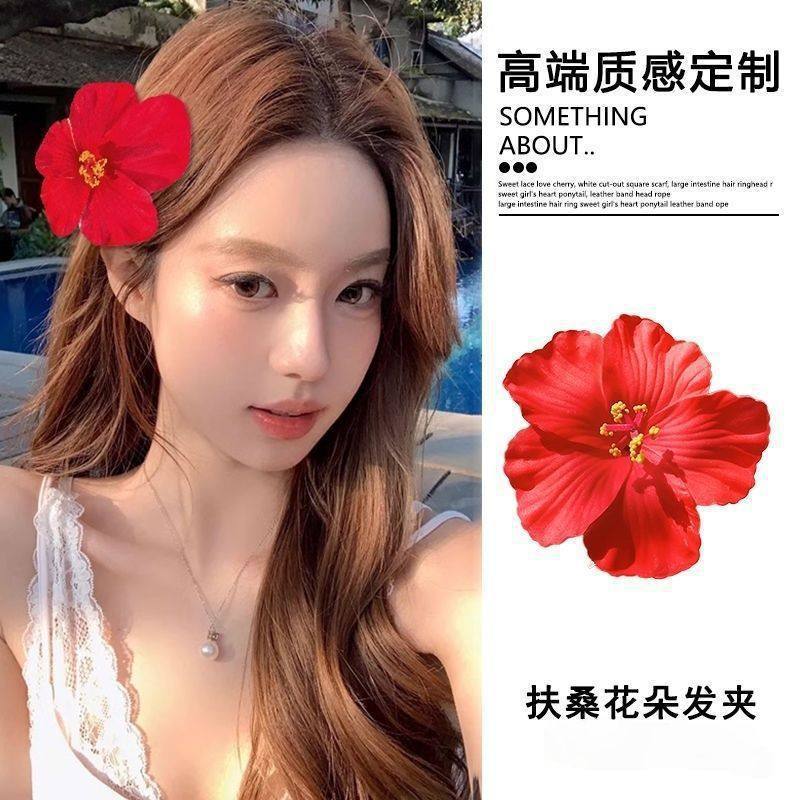 • 1#빨간 꽃 옆머리 헤어 클립