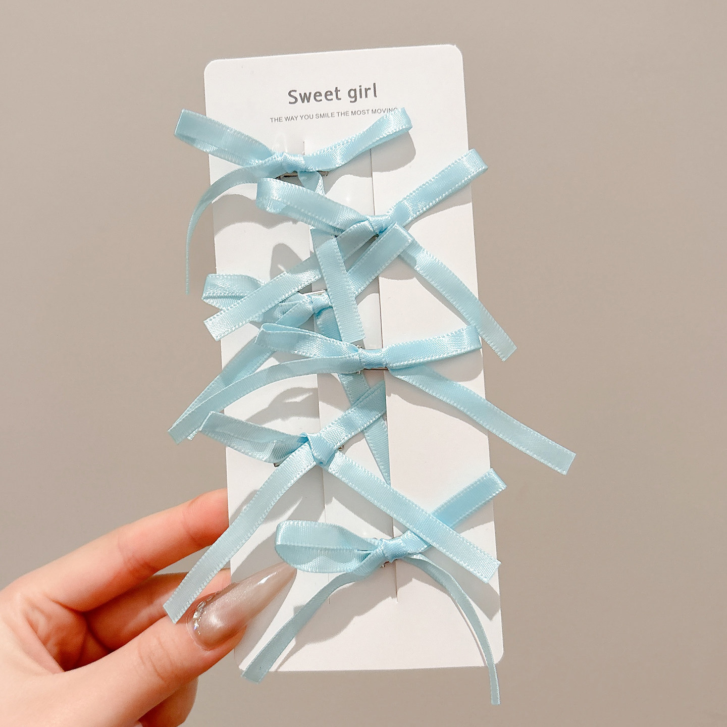 • 4#파란색 프렌치 폴리에스터 리본 머리핀 6개