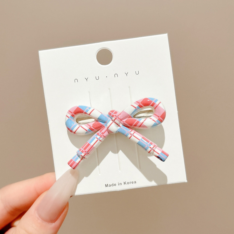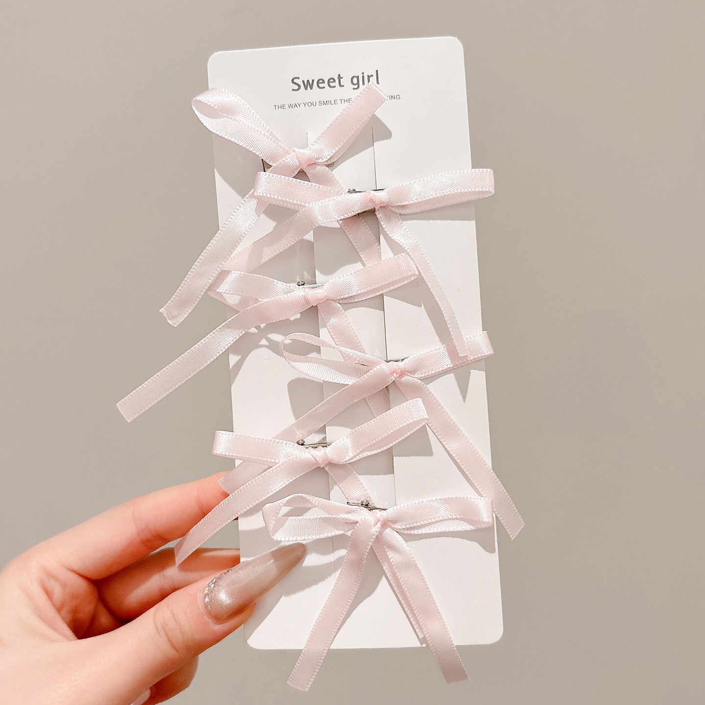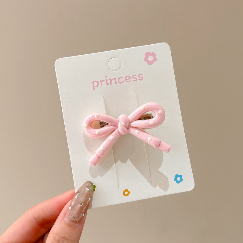 • 1#핑크 프렌치 폴리에스터 리본 머리핀 6개