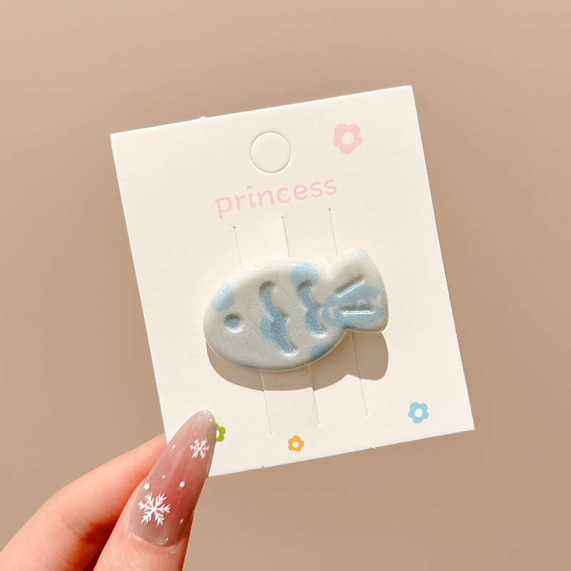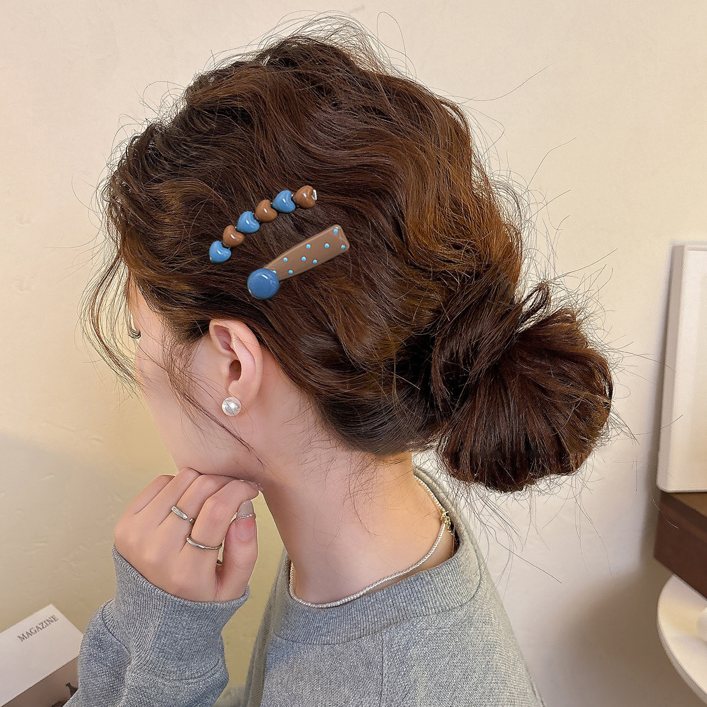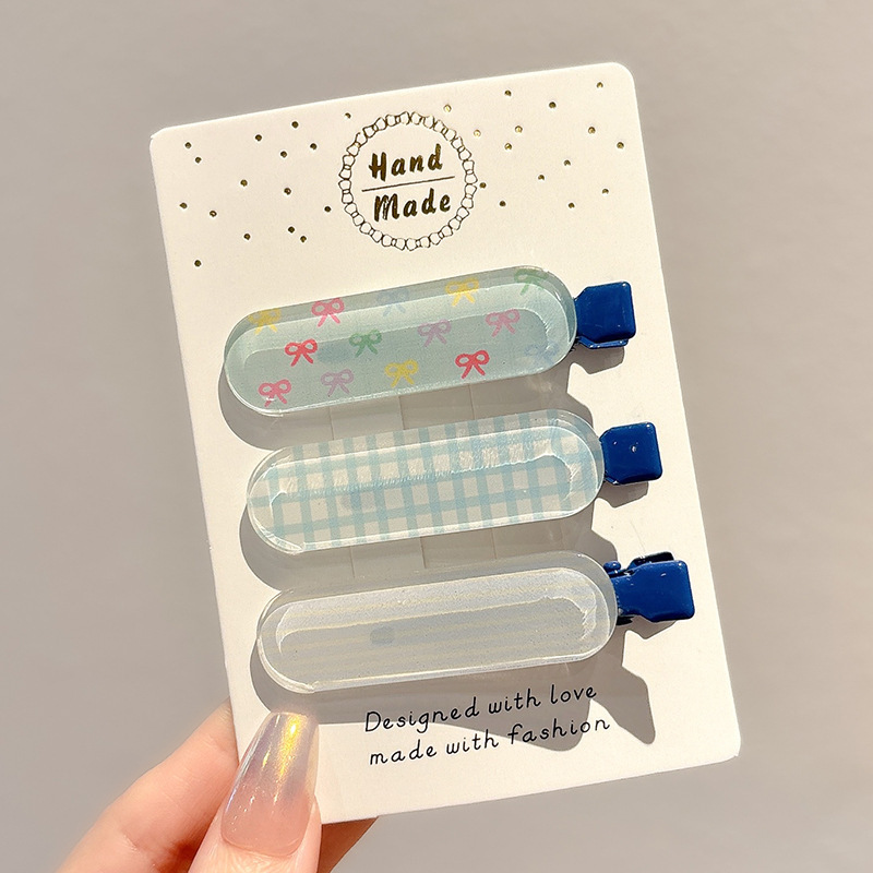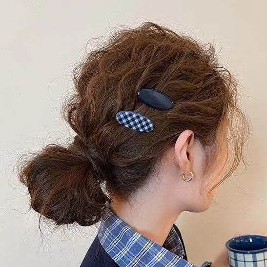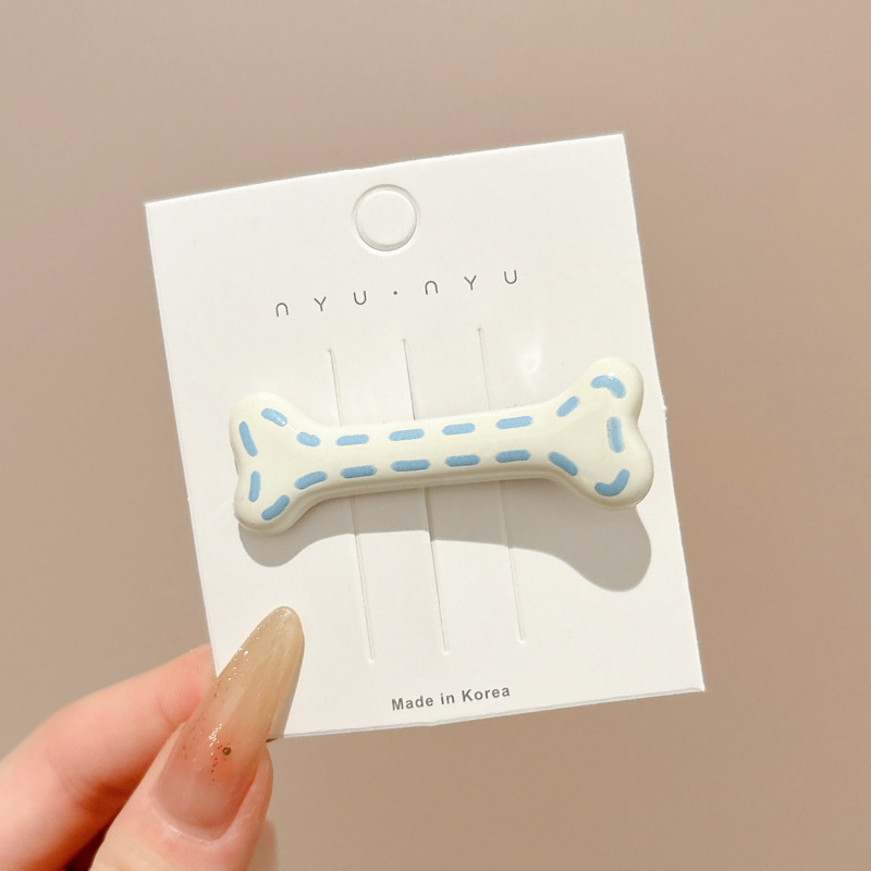 • 1#크림 블루 본 헤어 클립, 약 5.5cm