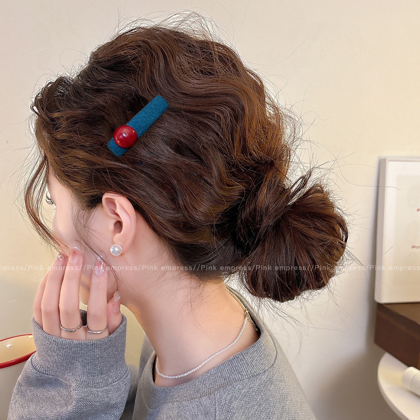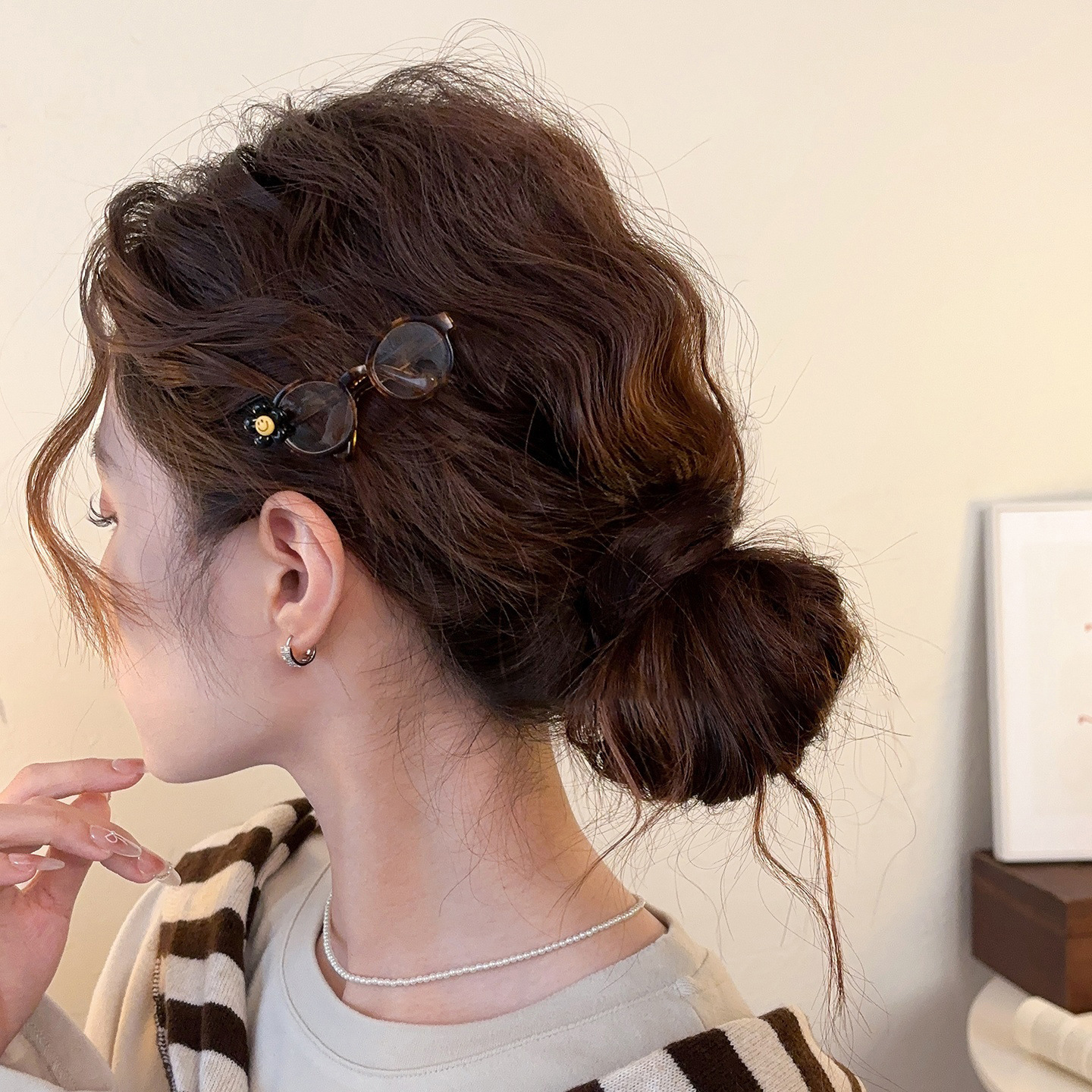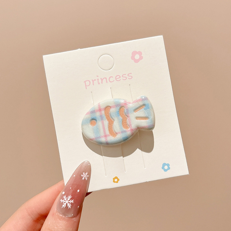 • 1#크림 블루 본 헤어 클립, 약 5.5cm