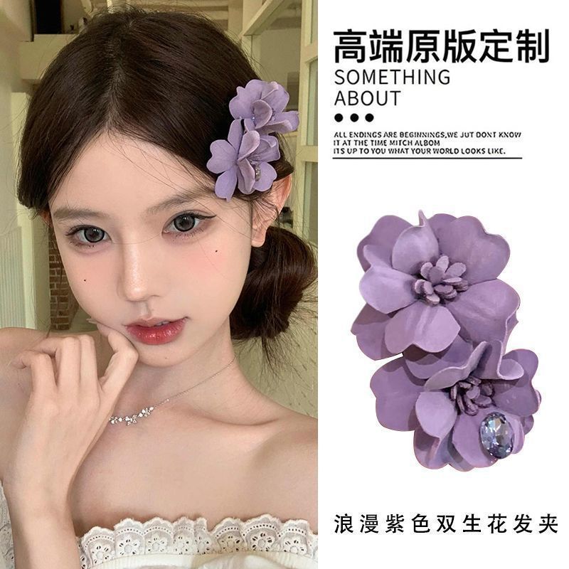 • 1#보라색 이중꽃 머리핀 약 8cm