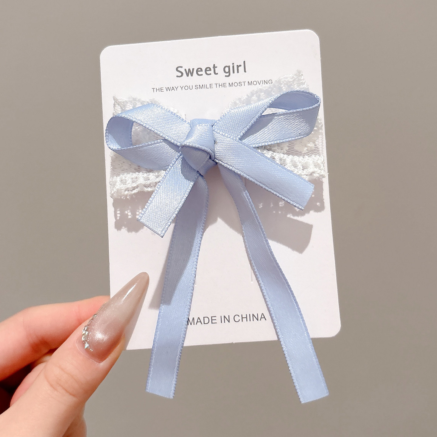 • 3#파란색 리본 타원형 머리핀 약 6.5cm