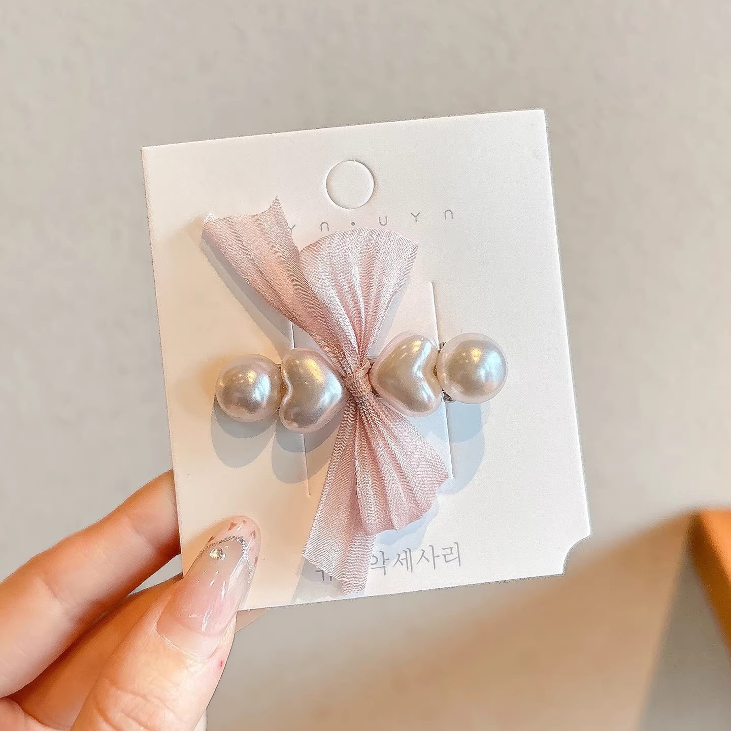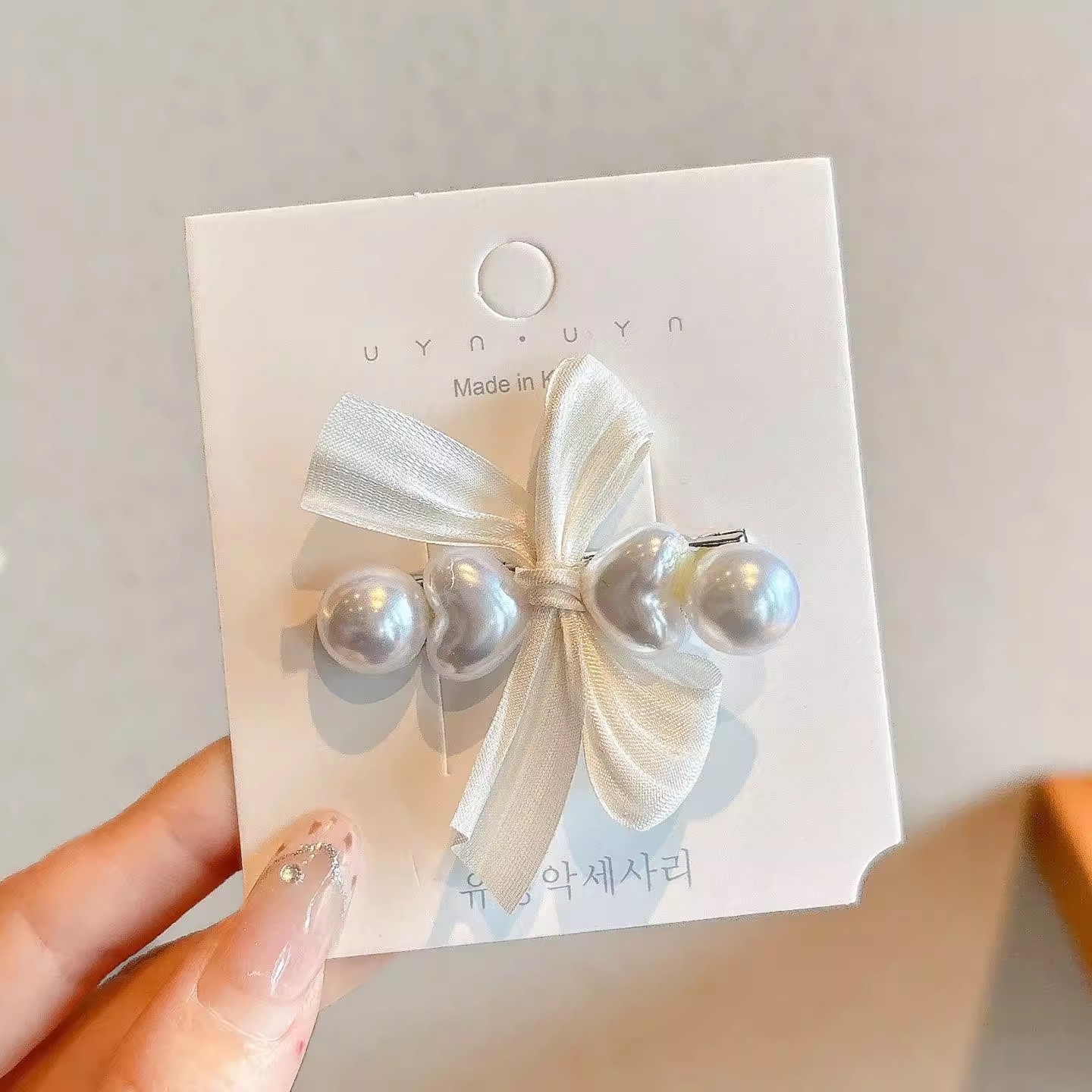 • 3#진주 리본 집게핀 1쌍 (4.5cm)