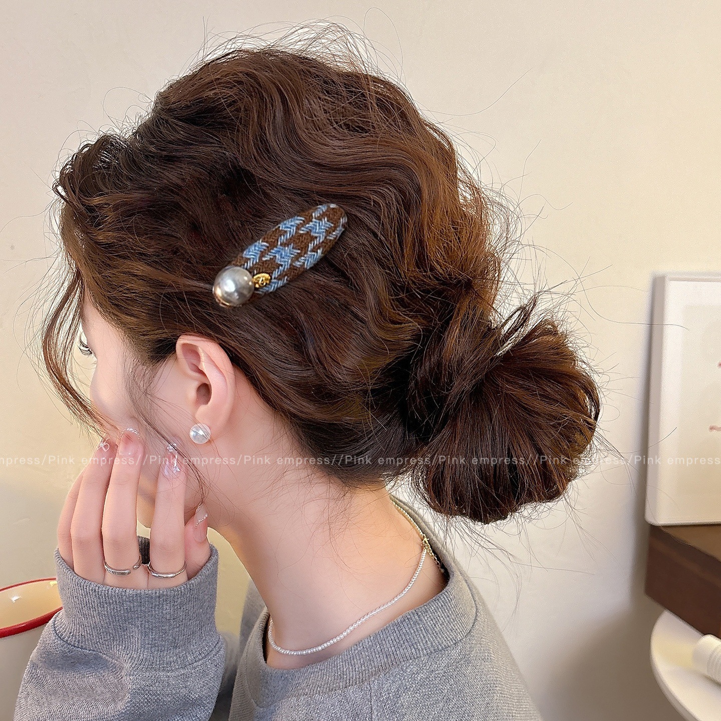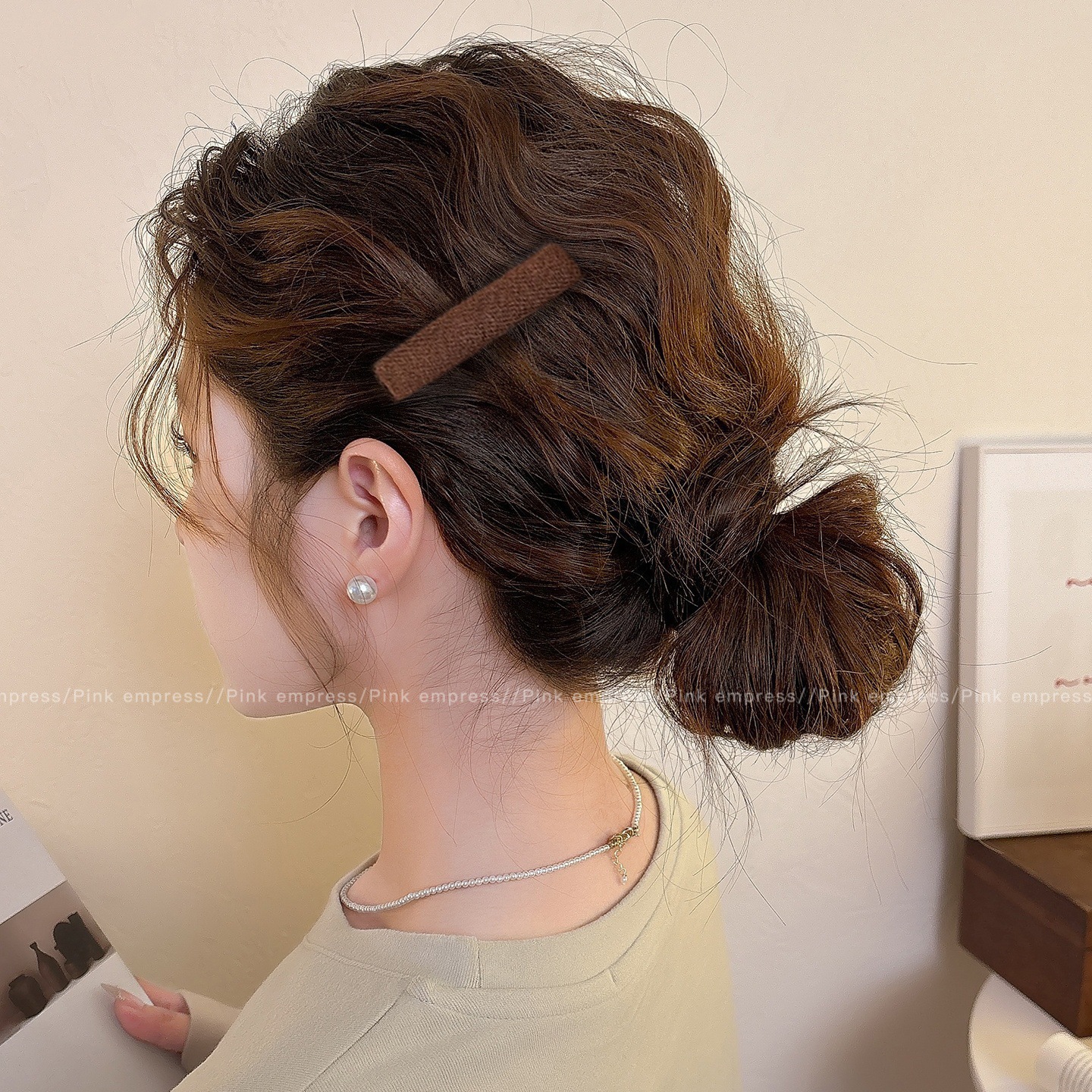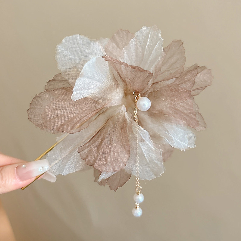 • 2#브라운 진주꽃 머리핀 13cm