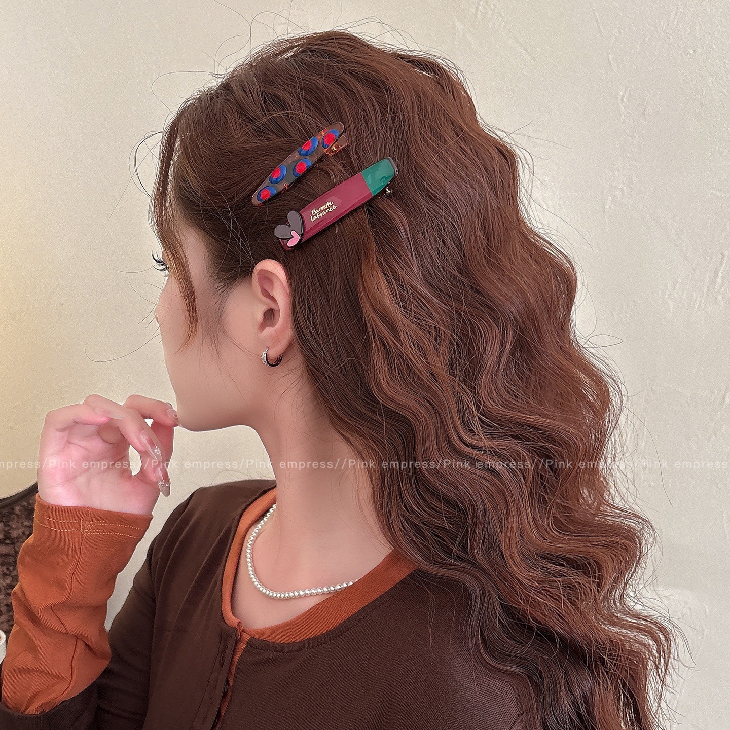 • 1#빨간색 하트 물방울 웨이브 헤어 클립 - 6.5cm