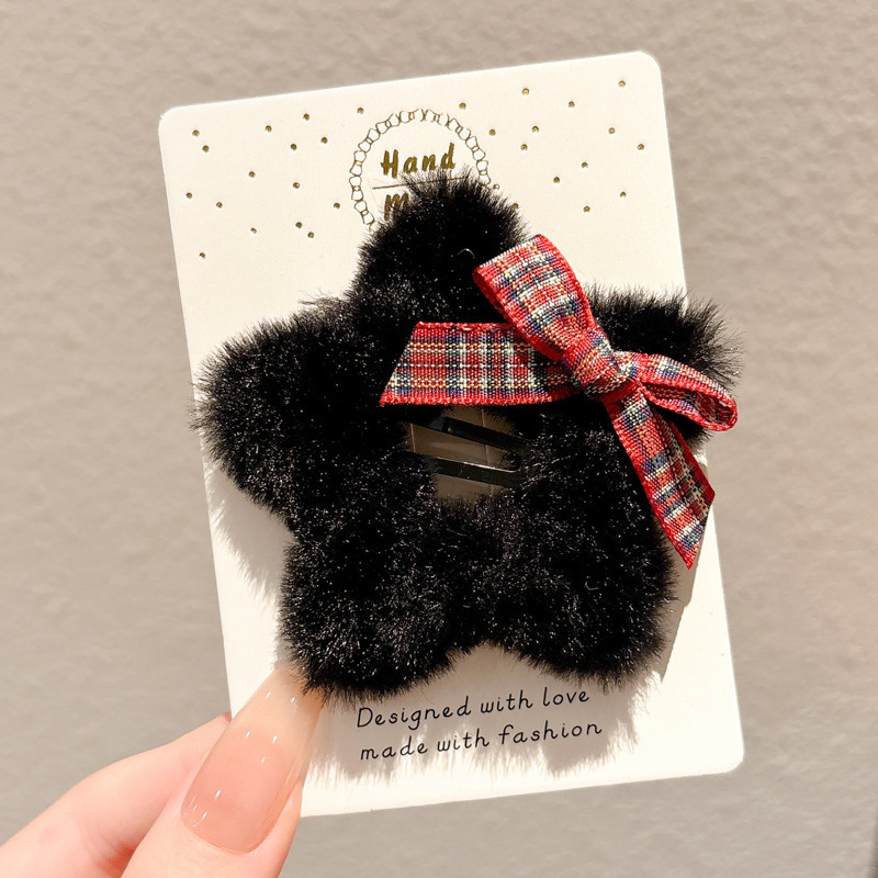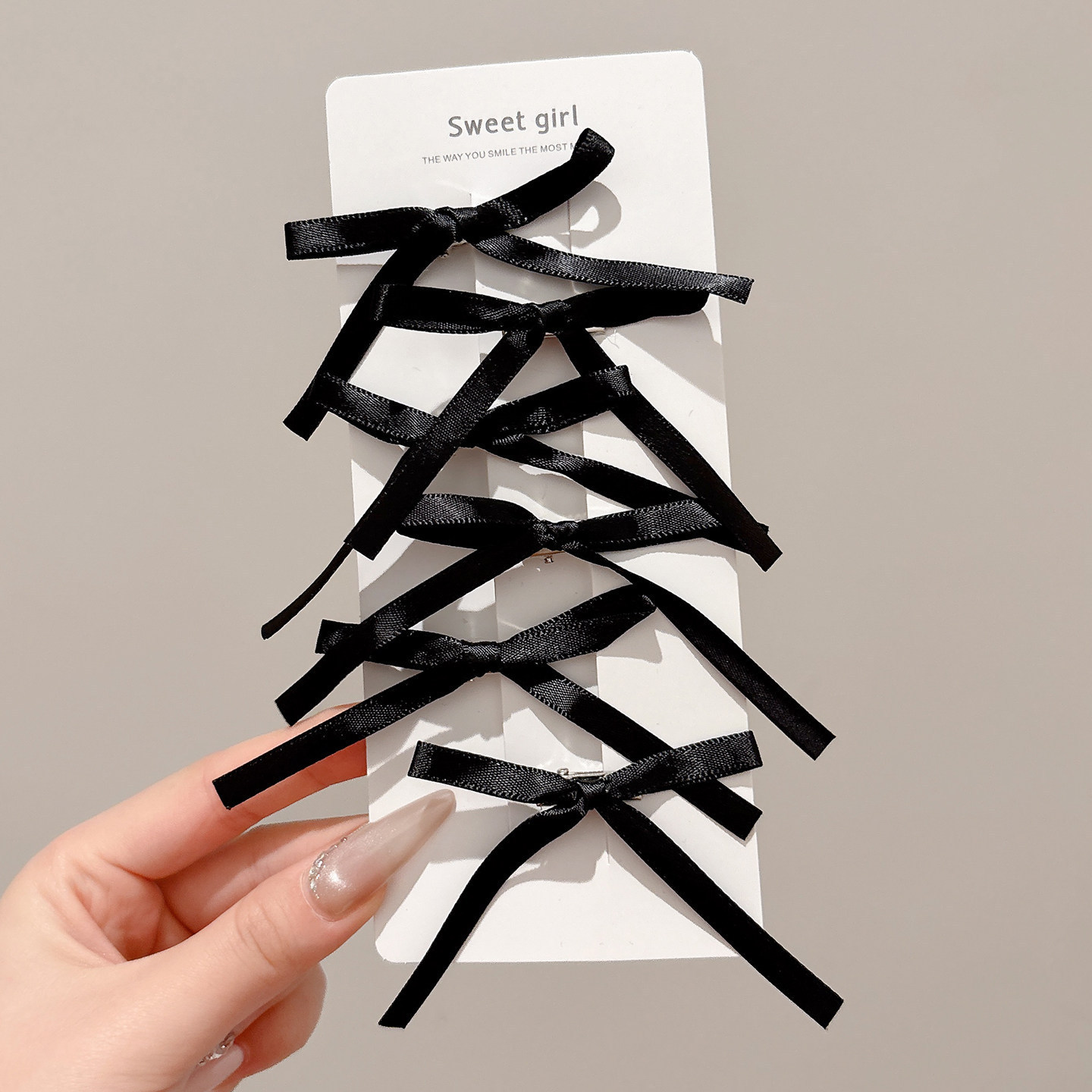 • 3#검정색 프렌치 폴리에스터 리본 헤어 클립 6개