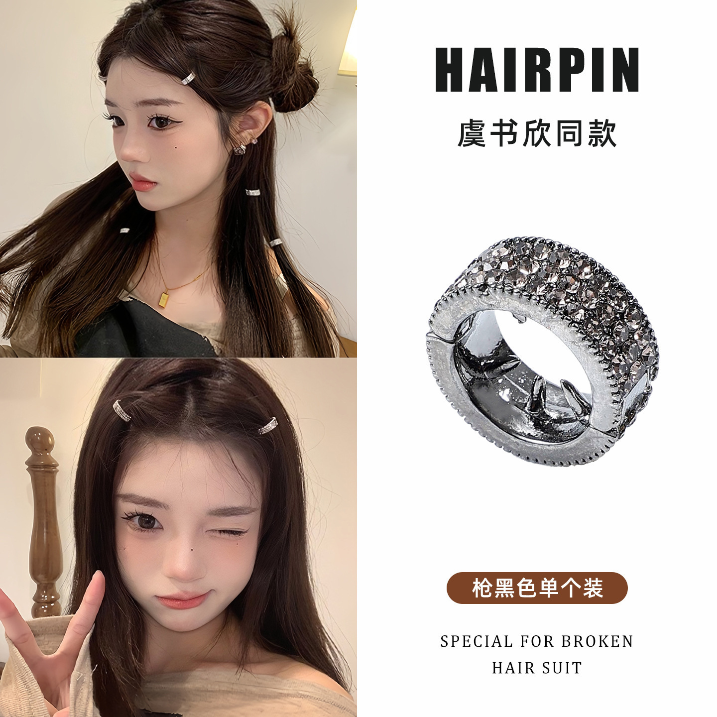 • 2#건메탈 헤어 클립#약 2cm