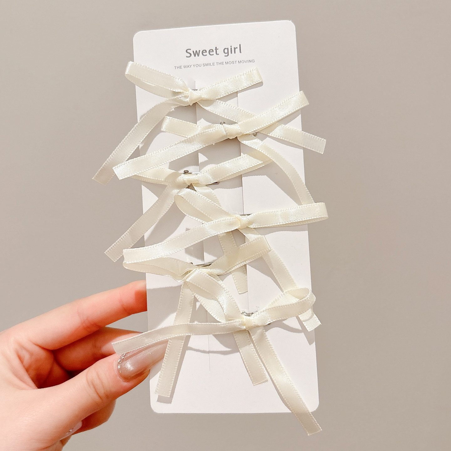 • 2#미색 프렌치 폴리에스터 리본 헤어 클립 6개