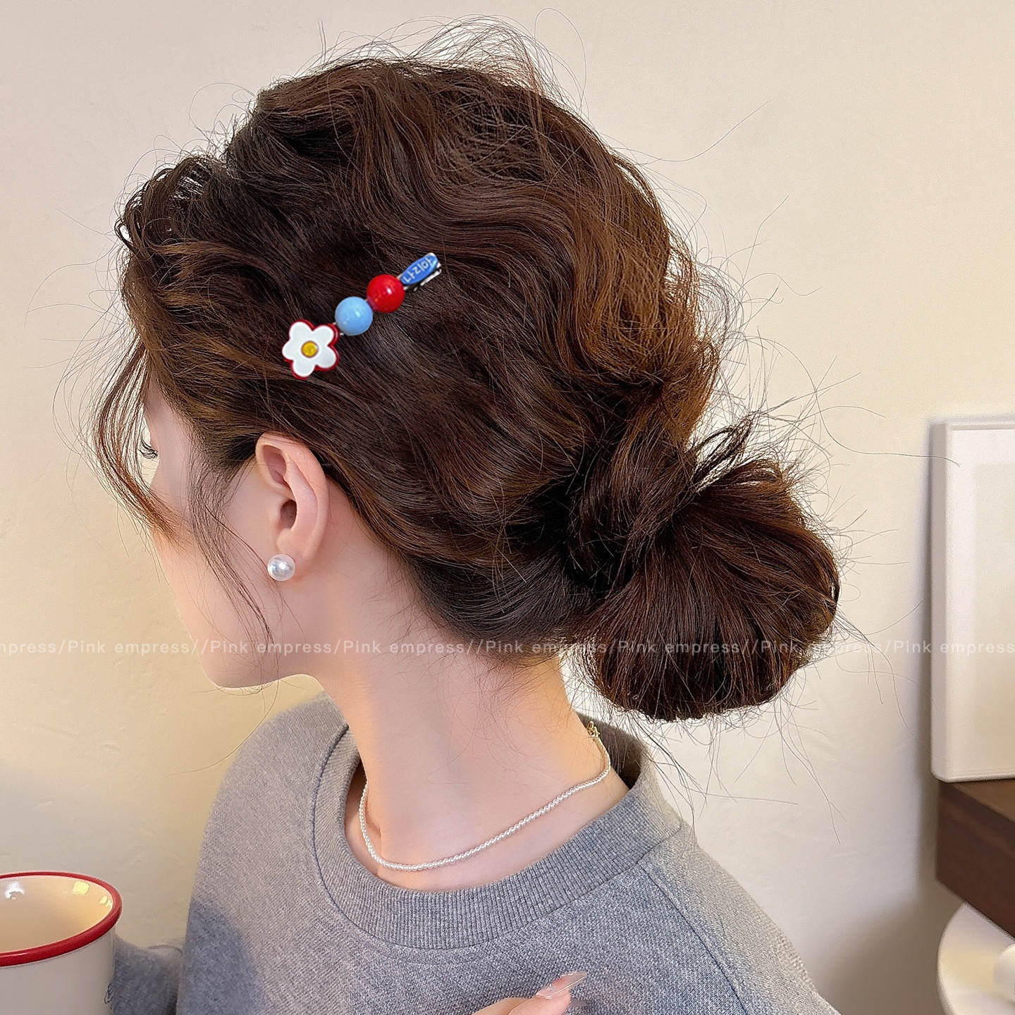 • 3#구슬 꽃 머리핀 - 약 6cm