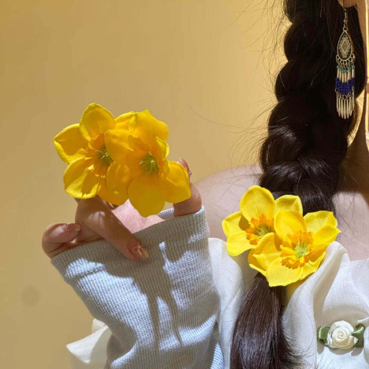• 1#이중 꽃-노란 머리핀