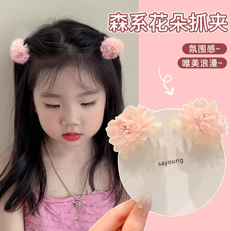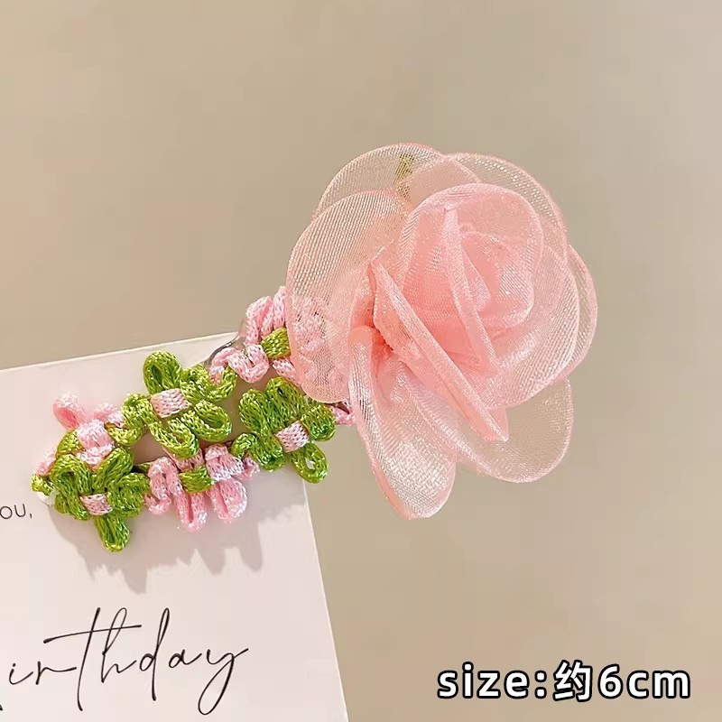 • 1#핑크 메쉬 꽃 머리핀