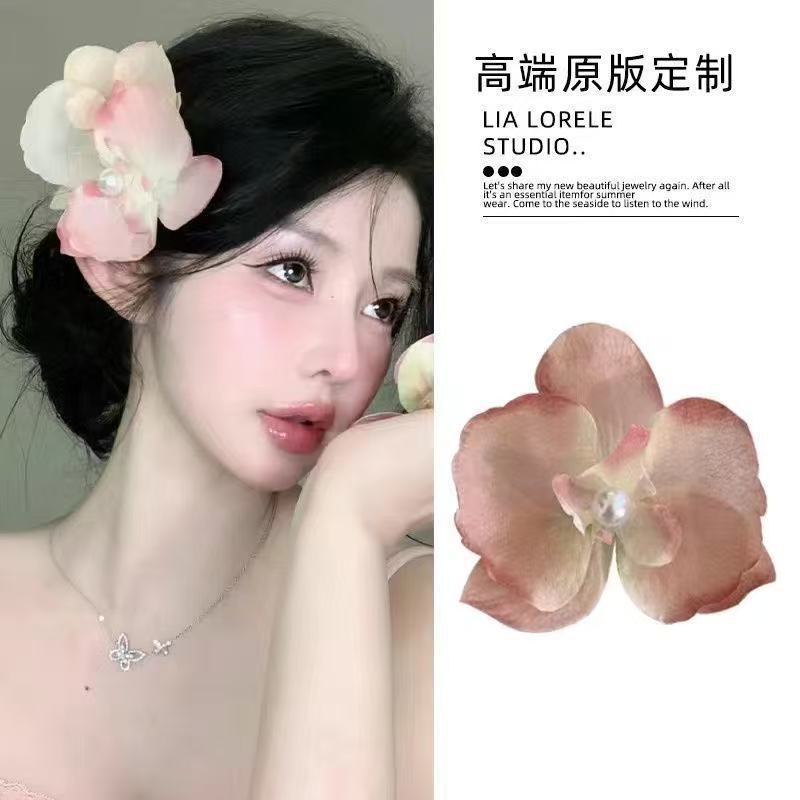 순수한 욕망 스타일 나비 난초 머리핀 슈퍼 요정 시뮬레이션 레이스 클립 해변 휴가 사진 머리핀 한국 고급 헤어 액세서리
