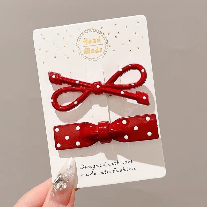 • 2#레드러브 도트버들잎클립-6.5cm
