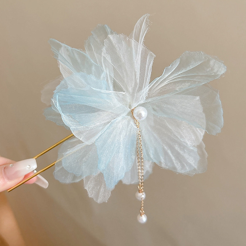 • 2#블루 메쉬 꽃 머리핀