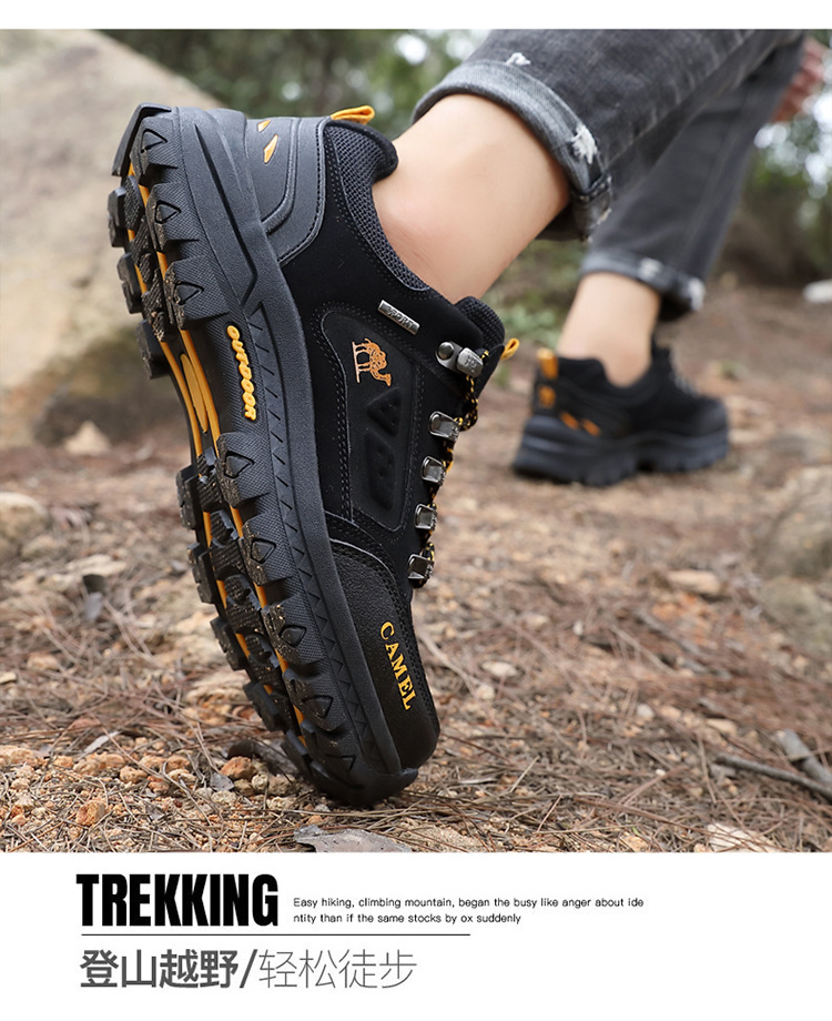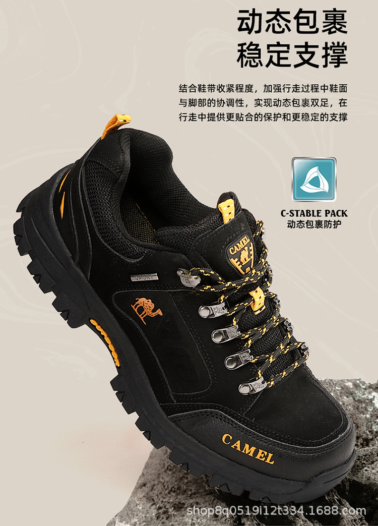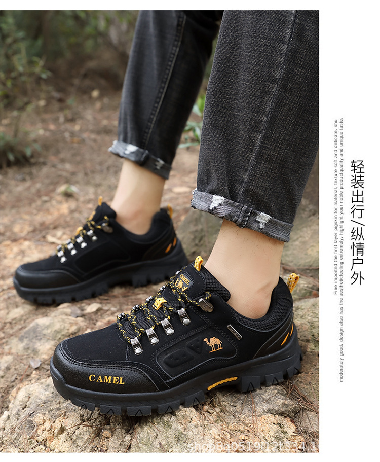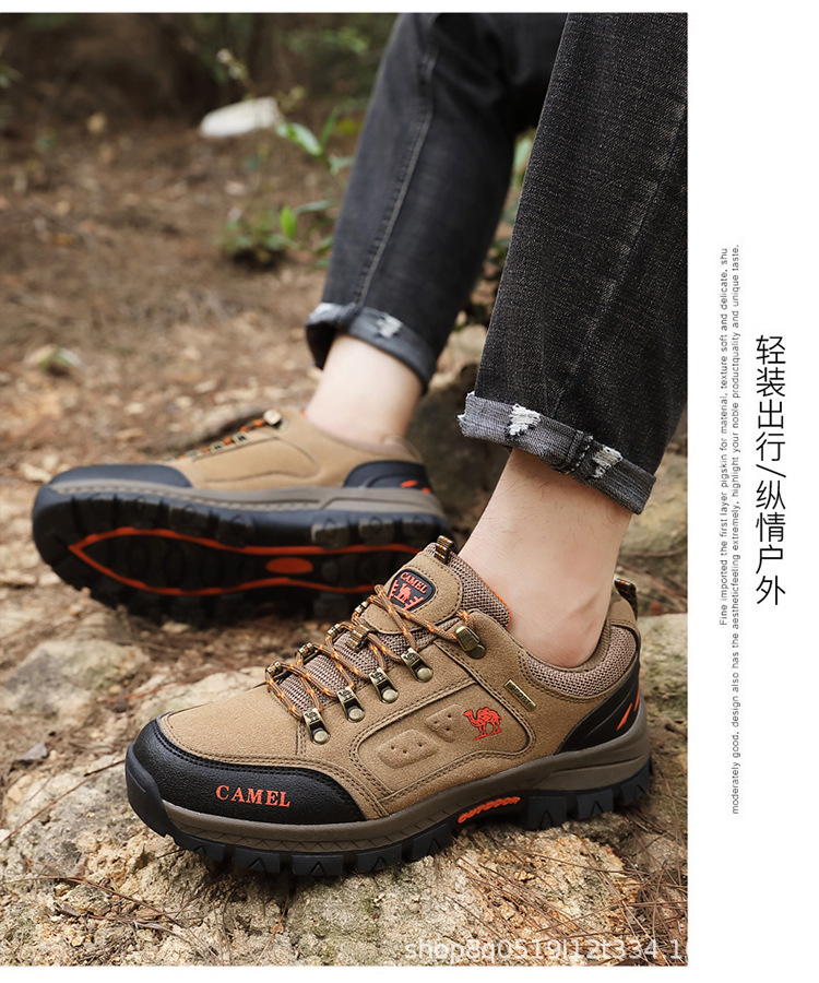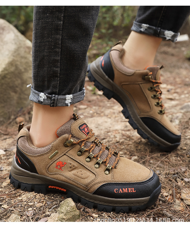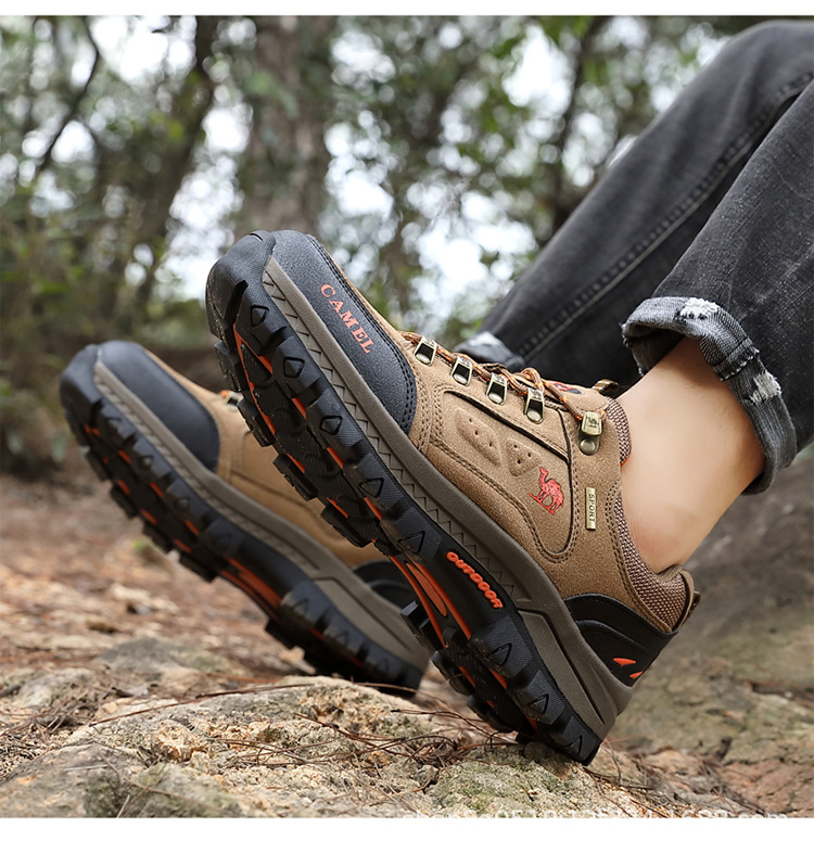 복지 남성용 카멜 하이킹 신발, 패셔너블한 미끄럼 방지 및 내마모성 가죽 크로스보더 인기 남성 신발, 야외 하이킹 신발스토어 가기