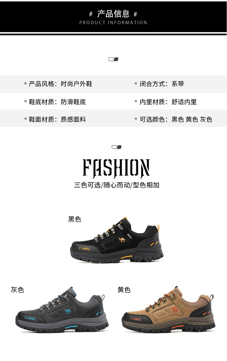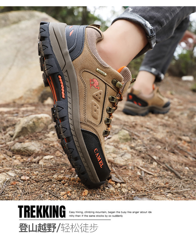 복지 남성용 카멜 하이킹 신발, 패셔너블한 미끄럼 방지 및 내마모성 가죽 크로스보더 인기 남성 신발, 야외 하이킹 신발