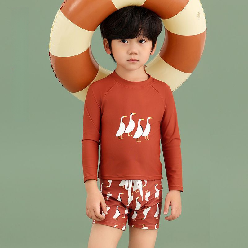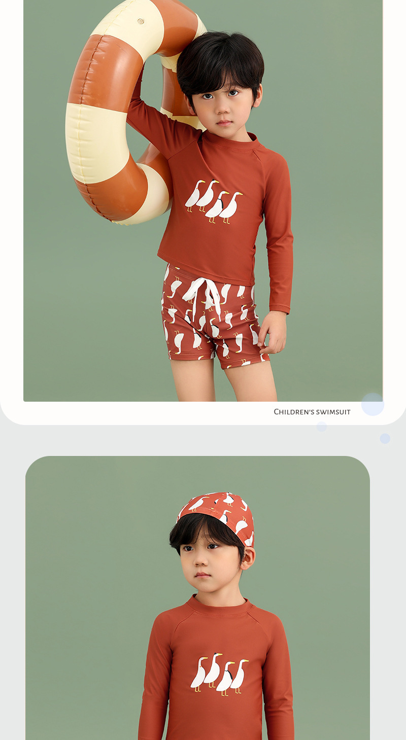 2025 새로운 소년 수영복 긴팔 어린이 스플릿 속건성 수영 트렁크 태양 보호 수영장 야외 수영복