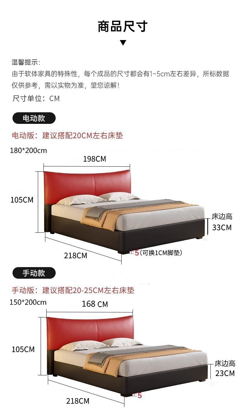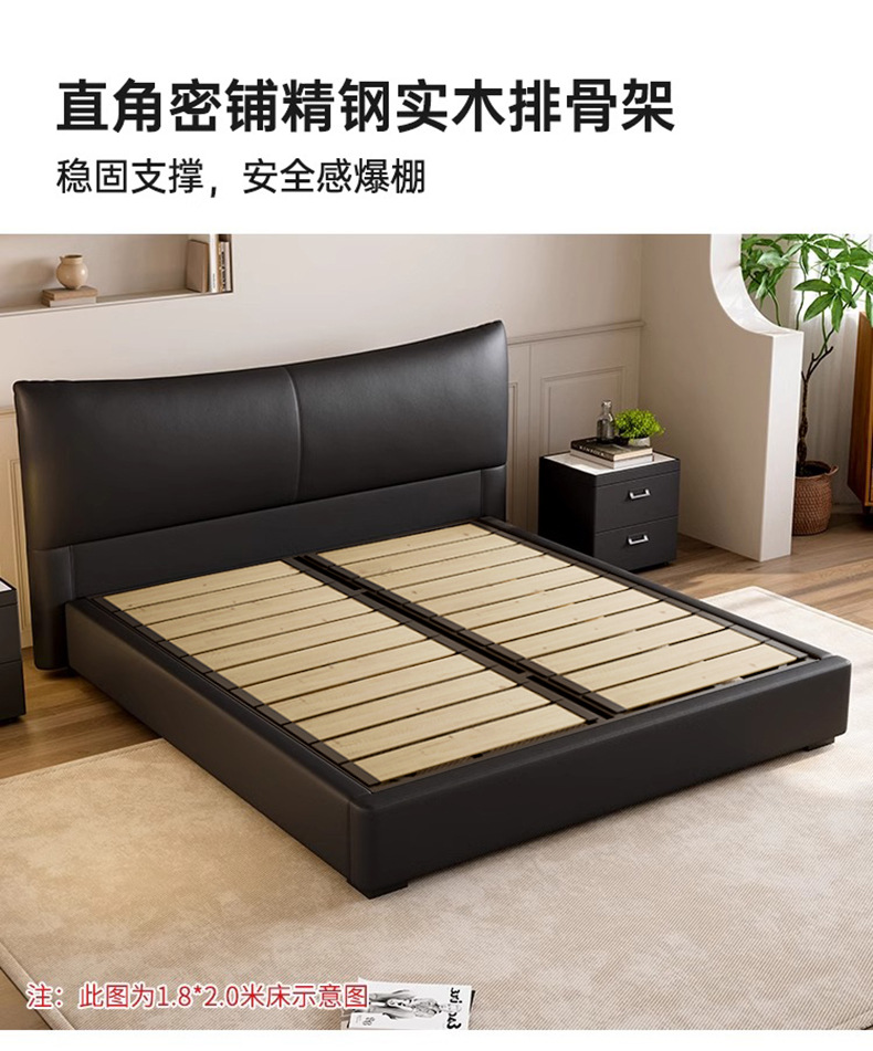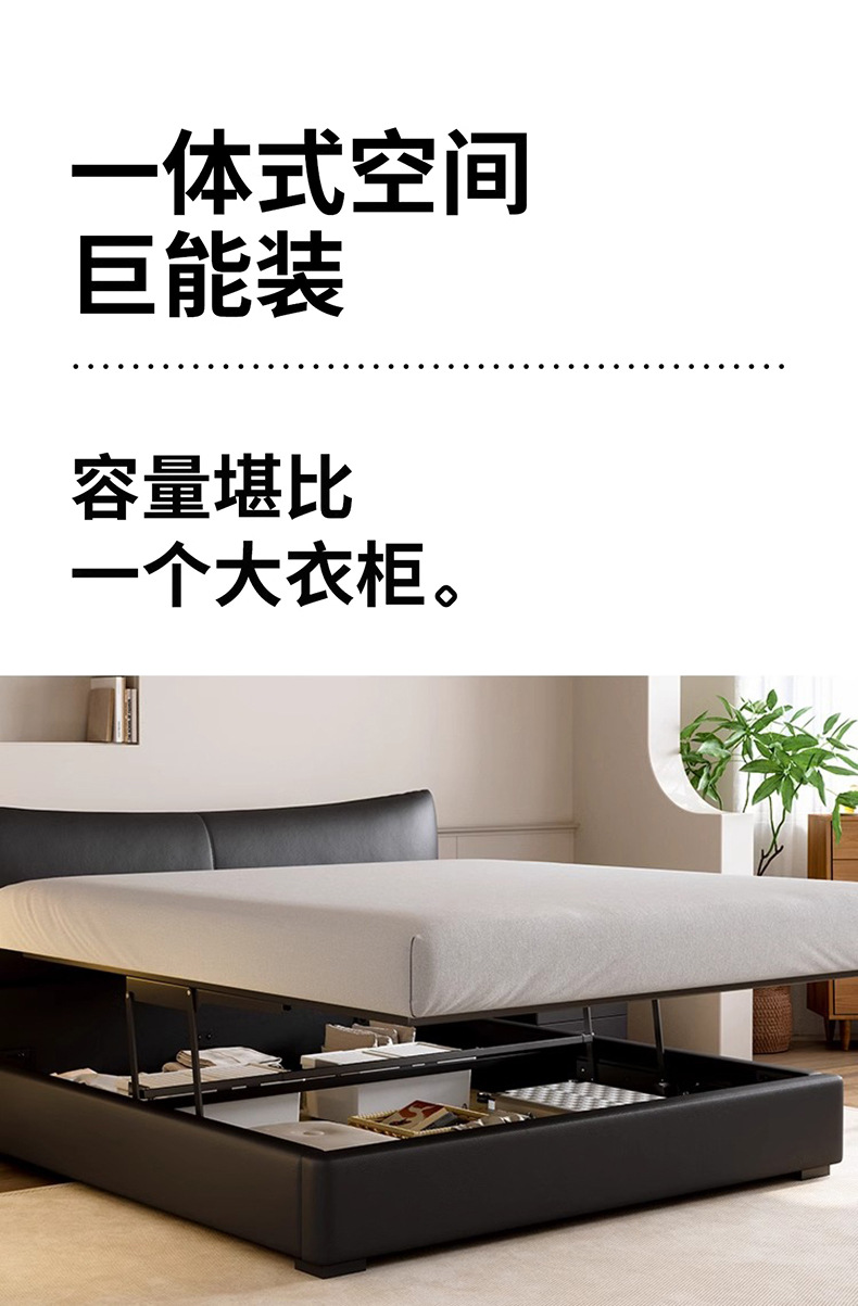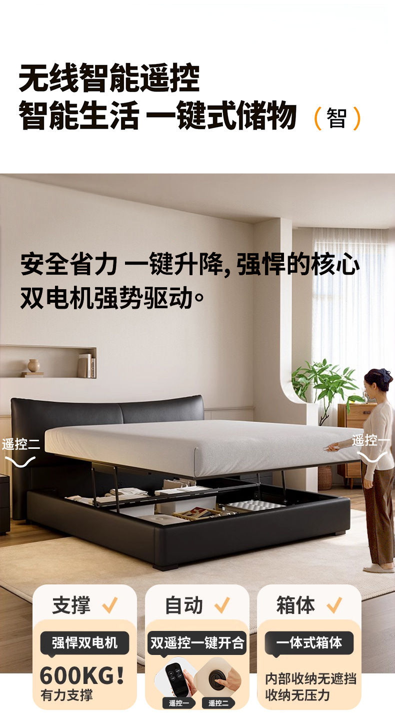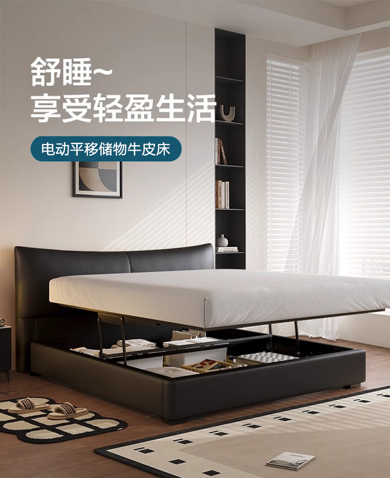 이탈리아 미니멀리스트 블랙 가죽 침대 전기 슬라이딩 다기능 수납 침대 더블 소프트 박스 하이 박스 마스터 침실 웨딩 침대스토어 가기