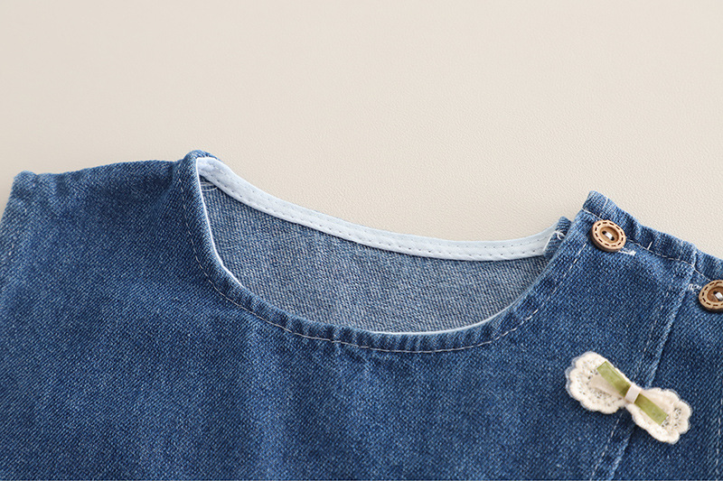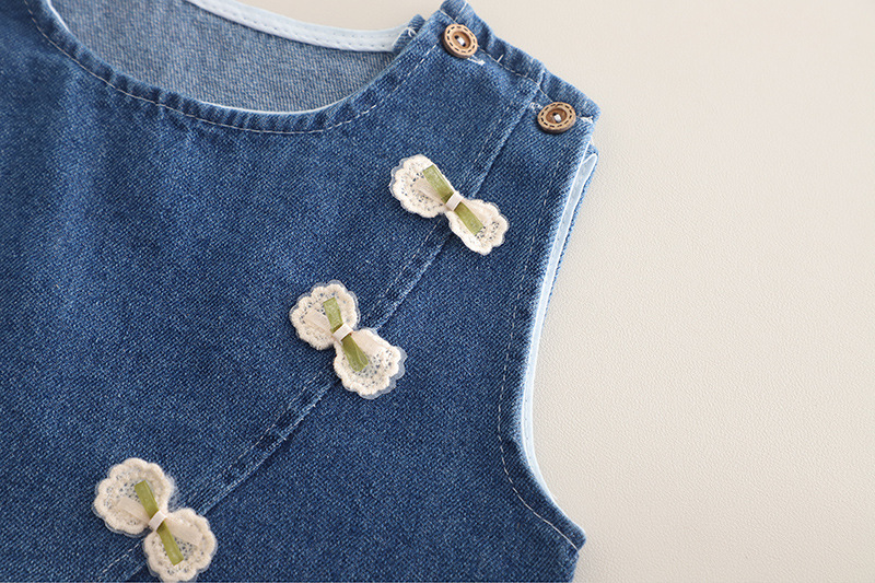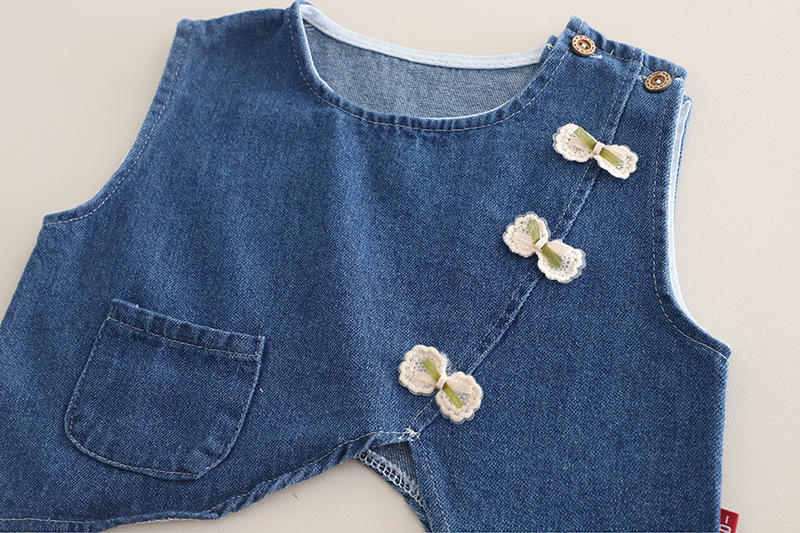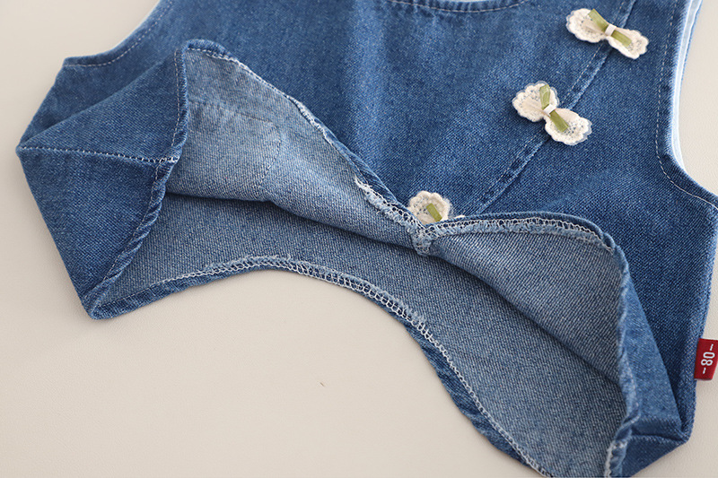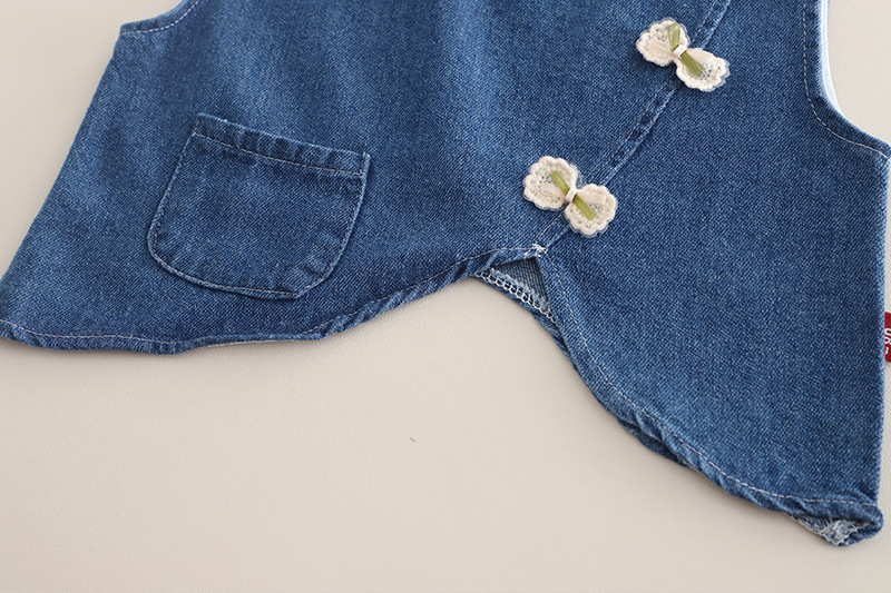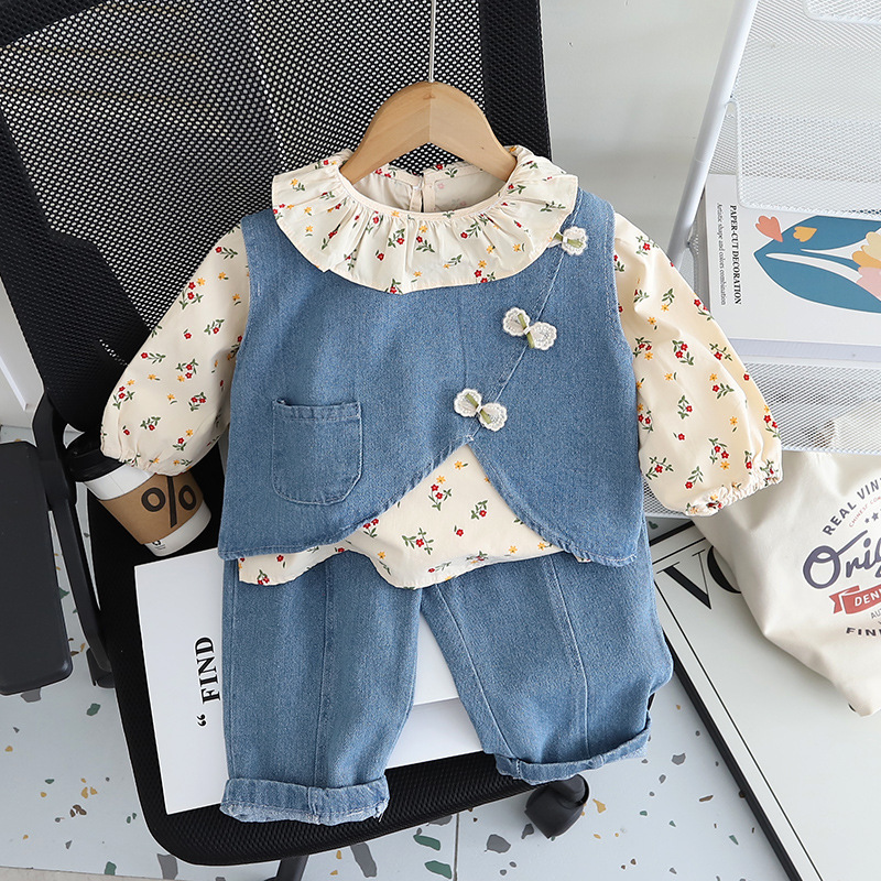 아기 소녀 봄, 가을 의류 세트 2025 새로운 스타일 1-3 세 5 중소형 어린이 데님 조끼 3 피스 세트 아기 옷 유행스토어 가기