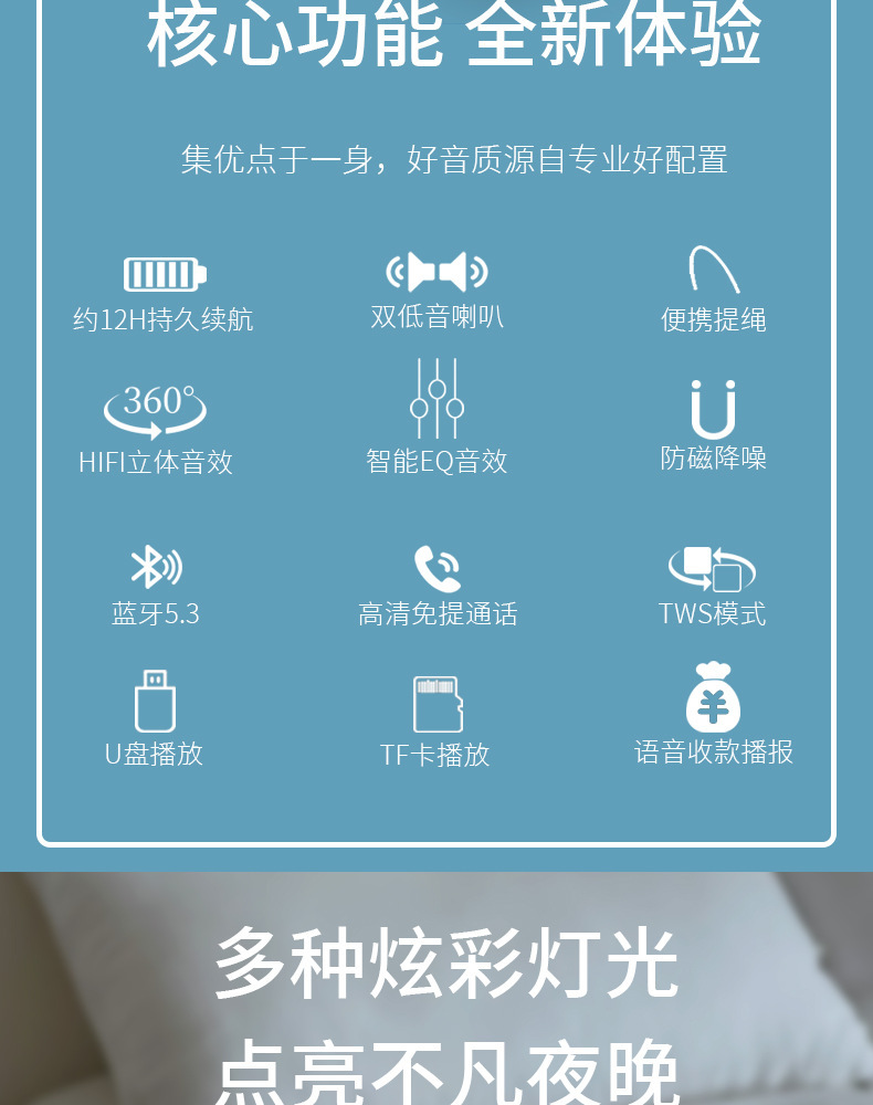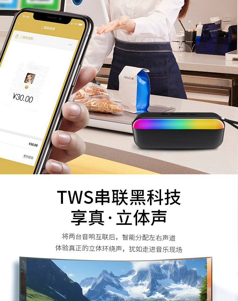 새로운 무선 블루투스 스피커, 슈퍼 서브우퍼, 대용량, 가정용 휴대용 카드, 음성 방송, 소형 스피커스토어 가기