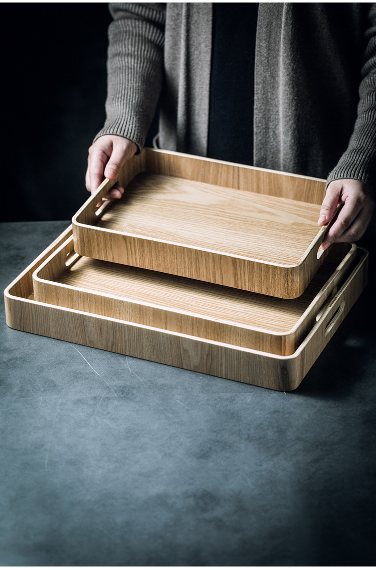 단단한 나무 직사각형 트레이 데스크탑 스토리지 커피 테이블 스토리지 트레이 컵 배치 트레이 빵 트레이 서빙 트레이 가정용