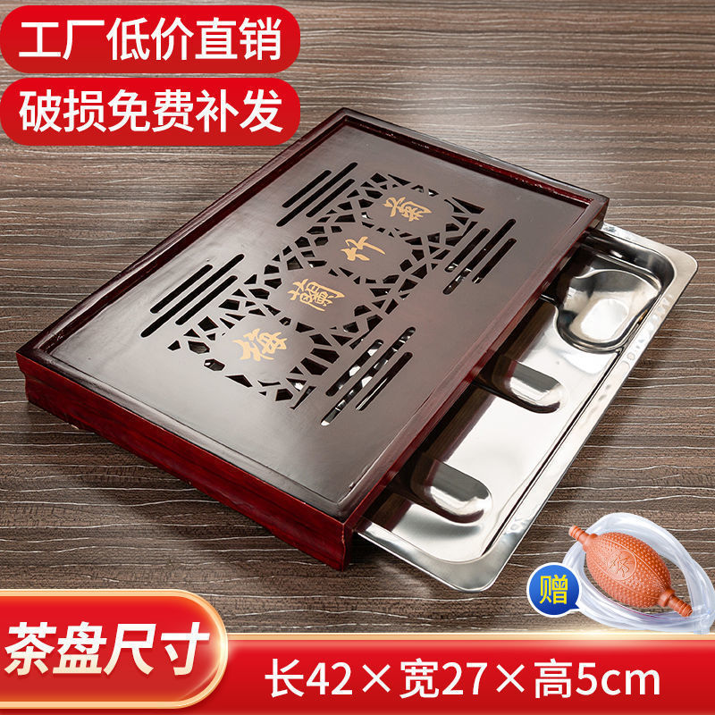 단단한 나무 차 트레이 가정용 쿵푸 차 세트 트레이 세트 간단한 대나무 서랍 유형 저장 및 배수 차 테이블 차 바다 소형스토어 가기