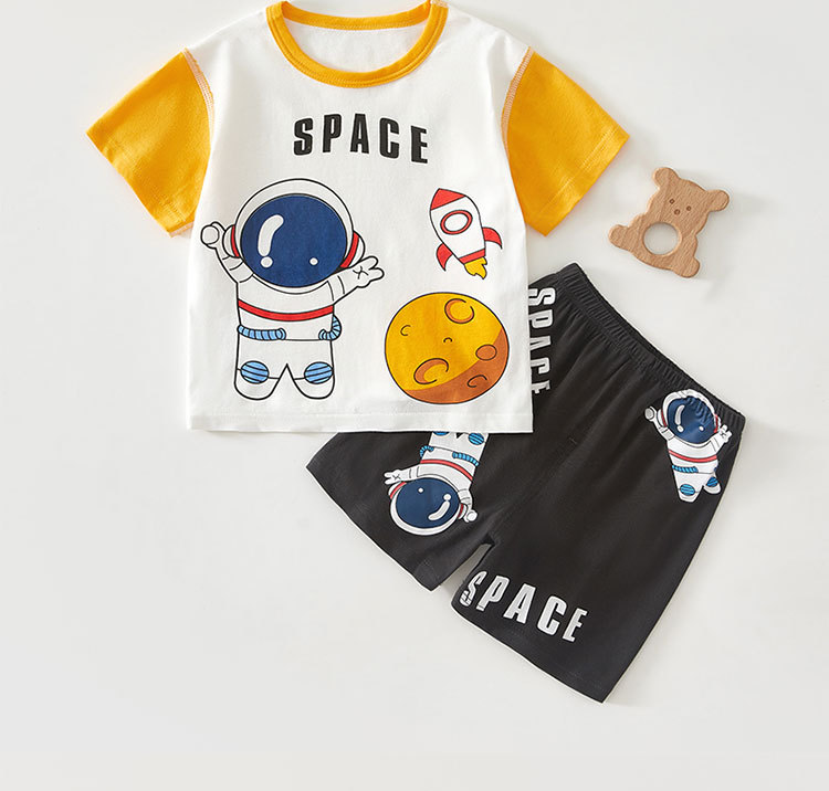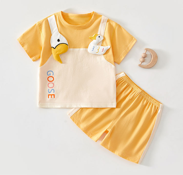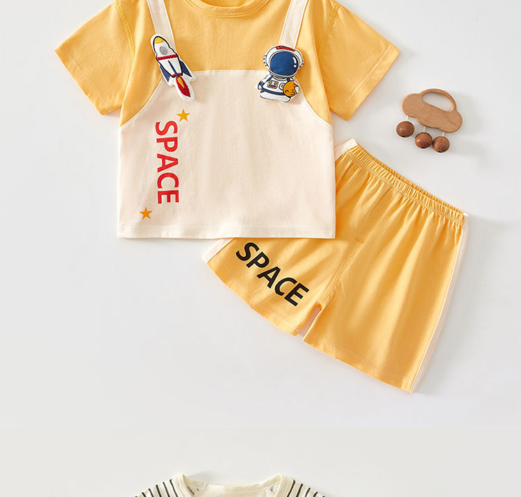 아기 반팔 양복 여름 얇은 소년 여름 옷 소녀 반바지 세트 순면 아기 옷 어린이 투피스 세트스토어 가기