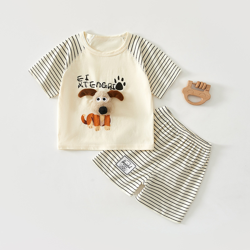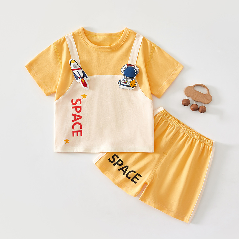 아기 반팔 양복 여름 얇은 소년 여름 옷 소녀 반바지 세트 순면 아기 옷 어린이 투피스 세트