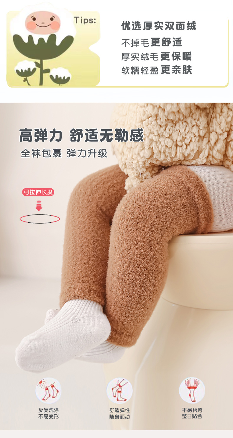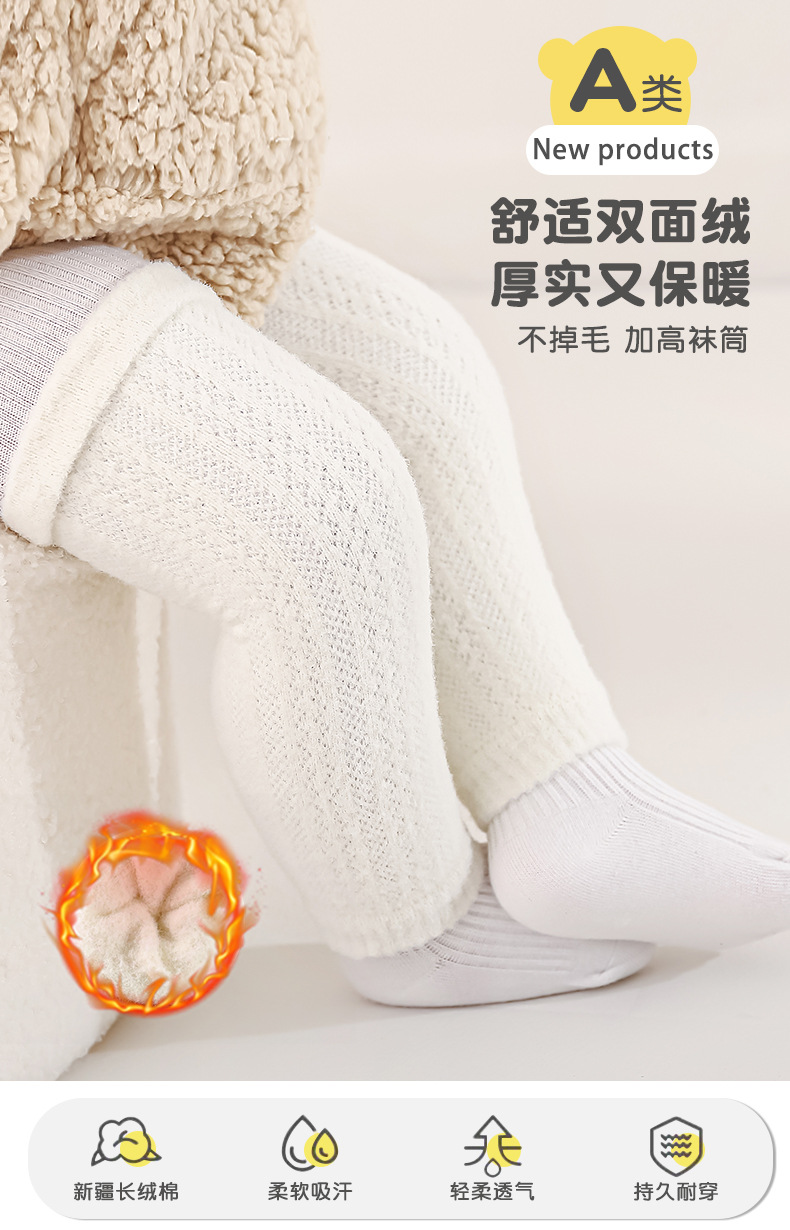 새로운 어린이 무릎 패드 따뜻하고 두꺼운 겨울 부드러운 아기 양말 아기 스타킹 양면 벨벳 아기 양말