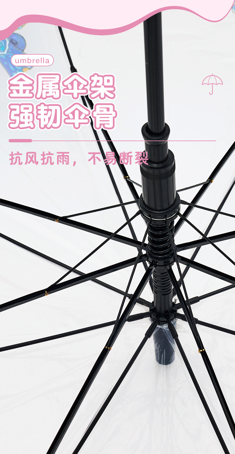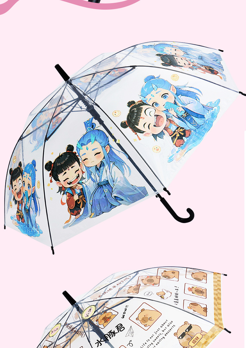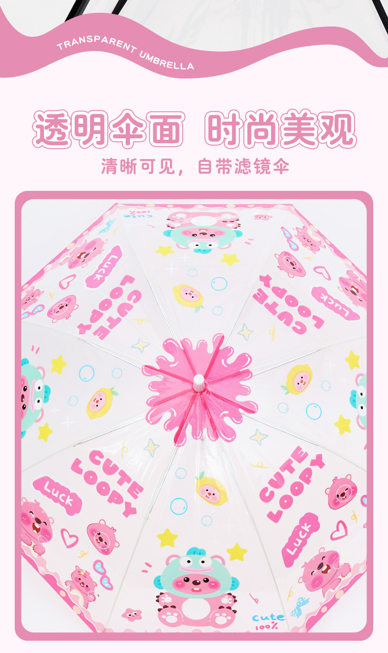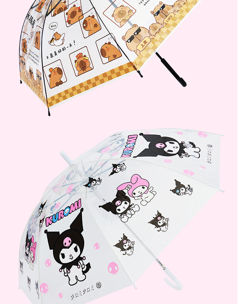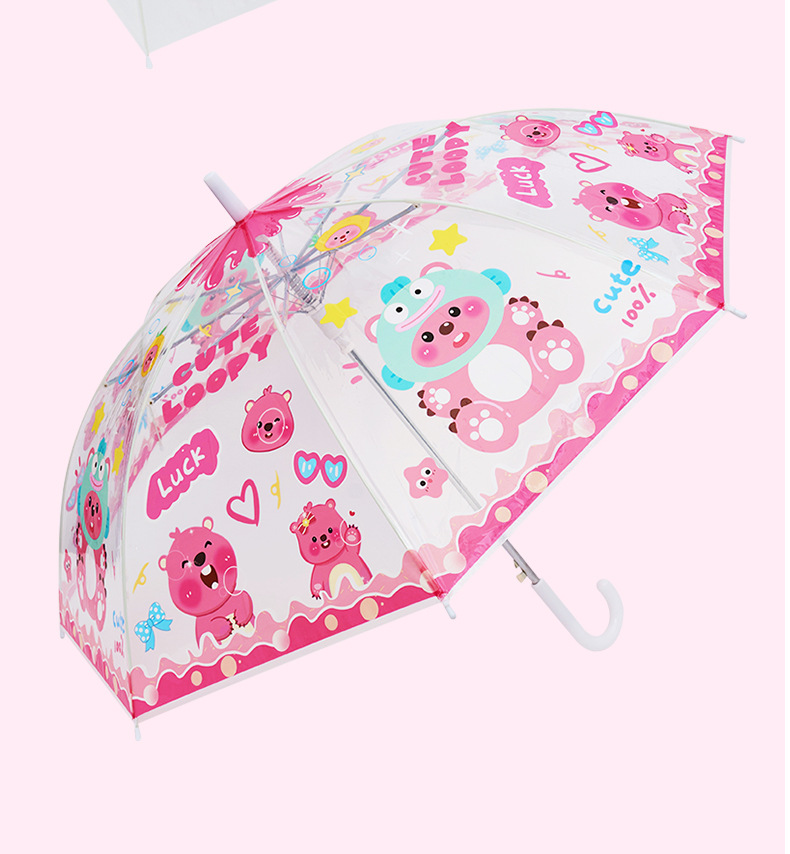2025 새로운 어린이 우산, 비 또는 빛, 긴 손잡이 우산, 검정색 비닐 자외선 차단제, 소녀와 소년을 위한 강화된 만화 우산