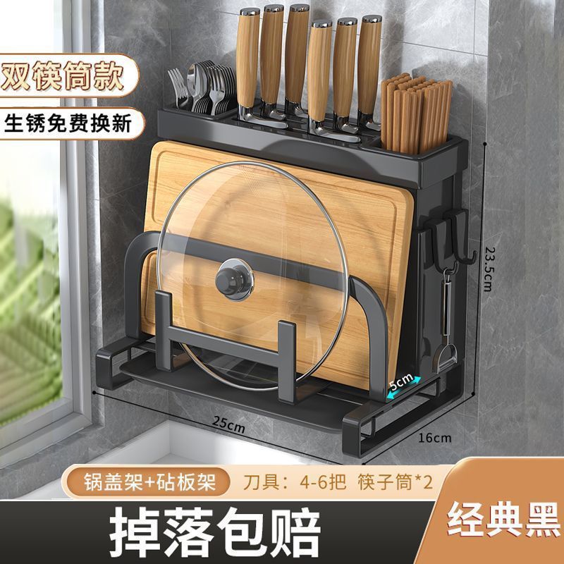 주방칼걸이, 주방칼, 젓가락, 도마, 냄비뚜껑, 도마, 다기능칼 일체형 수납선반