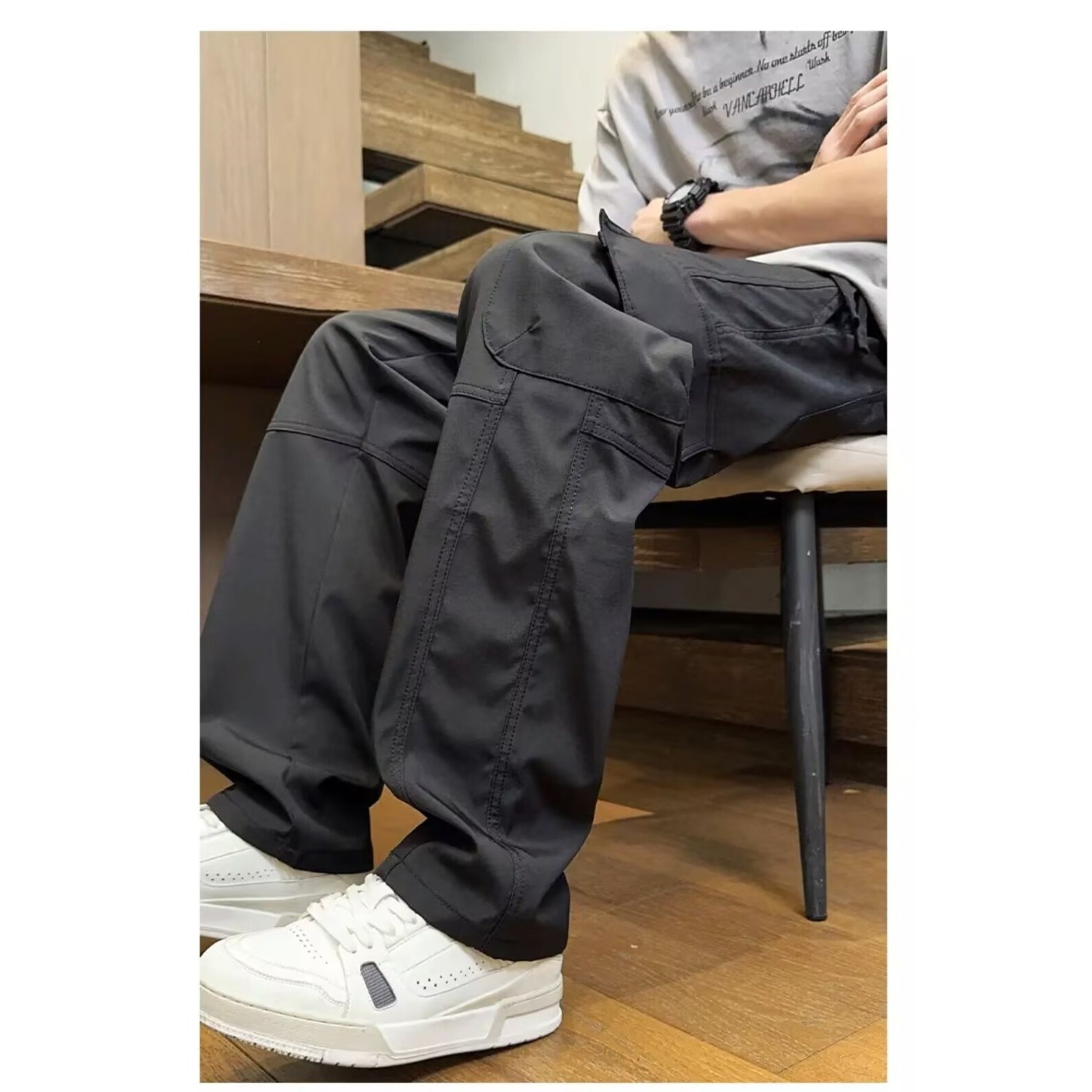남성용 아메리칸 스타일 오버올, 루즈한 스트레이트 레그, 봄, 가을 충전 바지, 대형 포켓, 트렌디한 아웃도어 스포츠 및 레저 바지스토어 가기