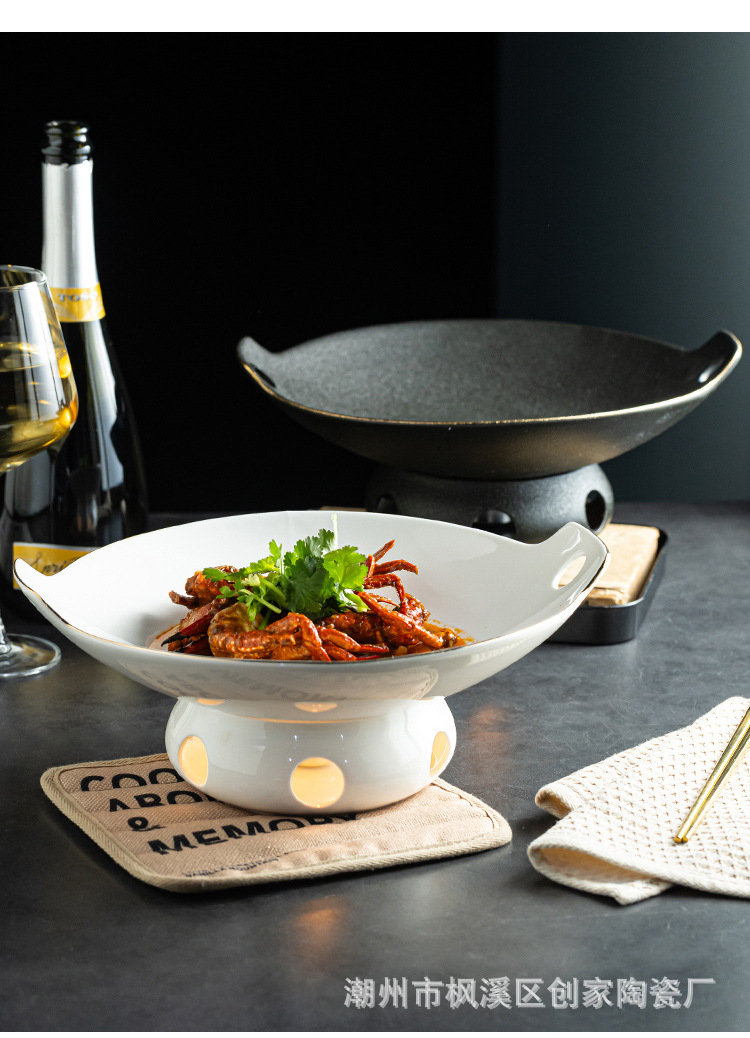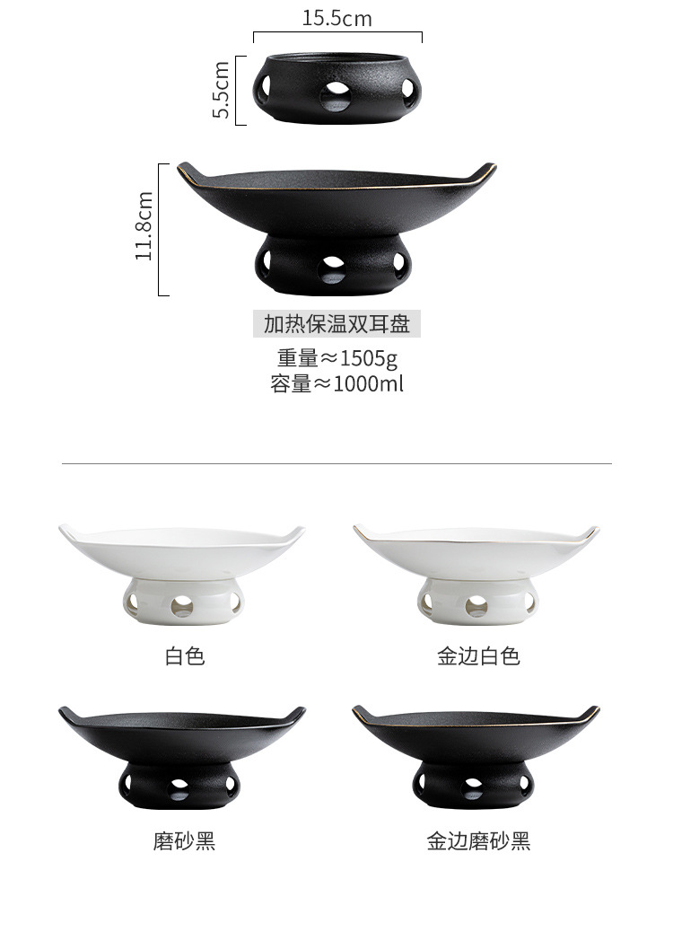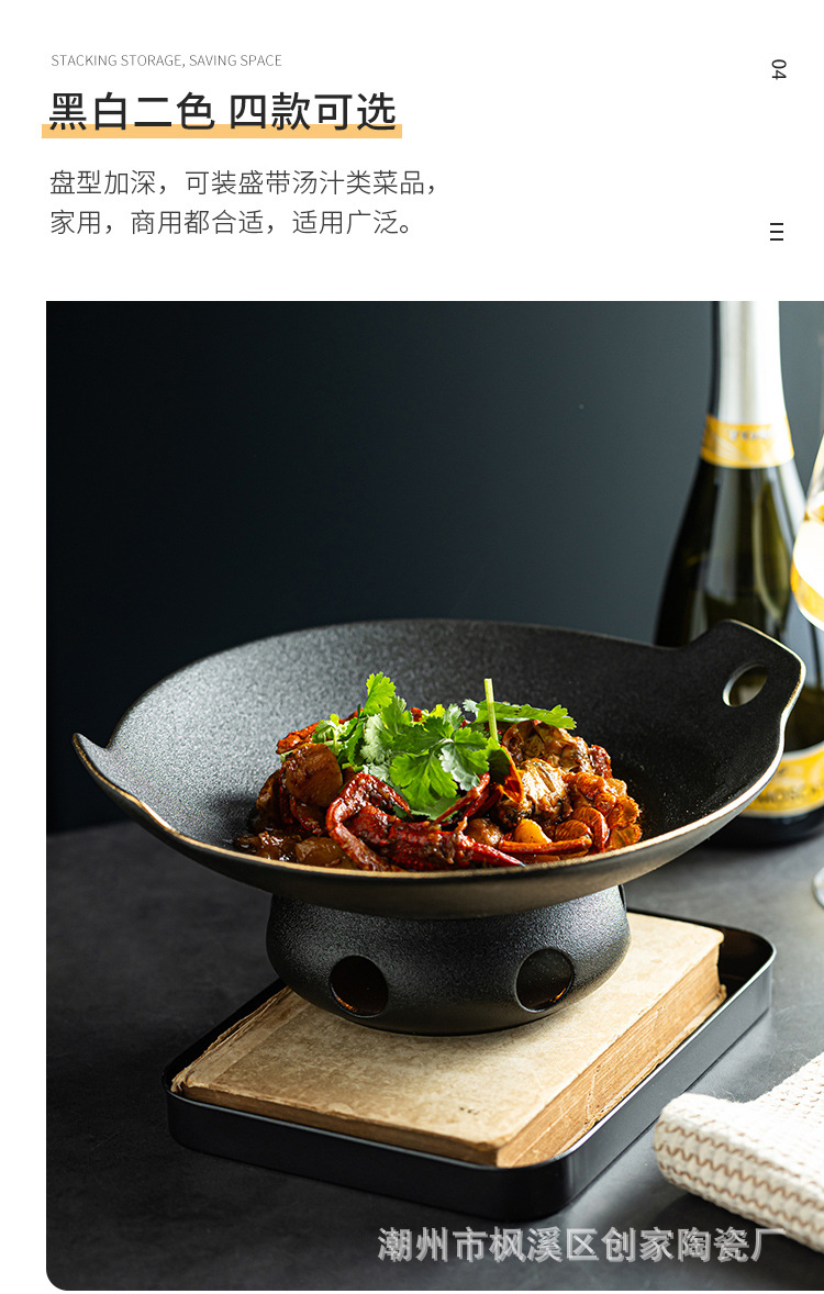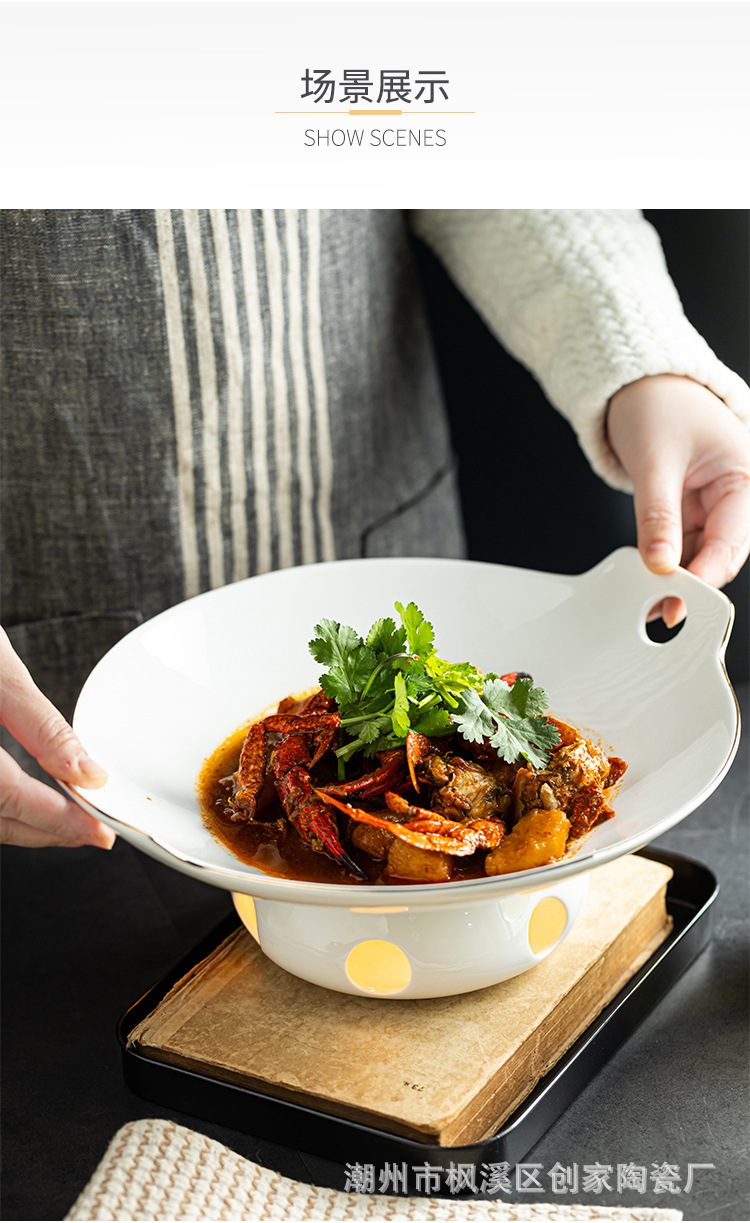 세라믹 건식 냄비 가열로 접시 수프 그릇 서양 음식 접시 레스토랑 둥근 양이 식기 촛불 오픈 스토브 상업용 수프 냄비