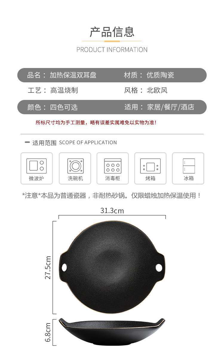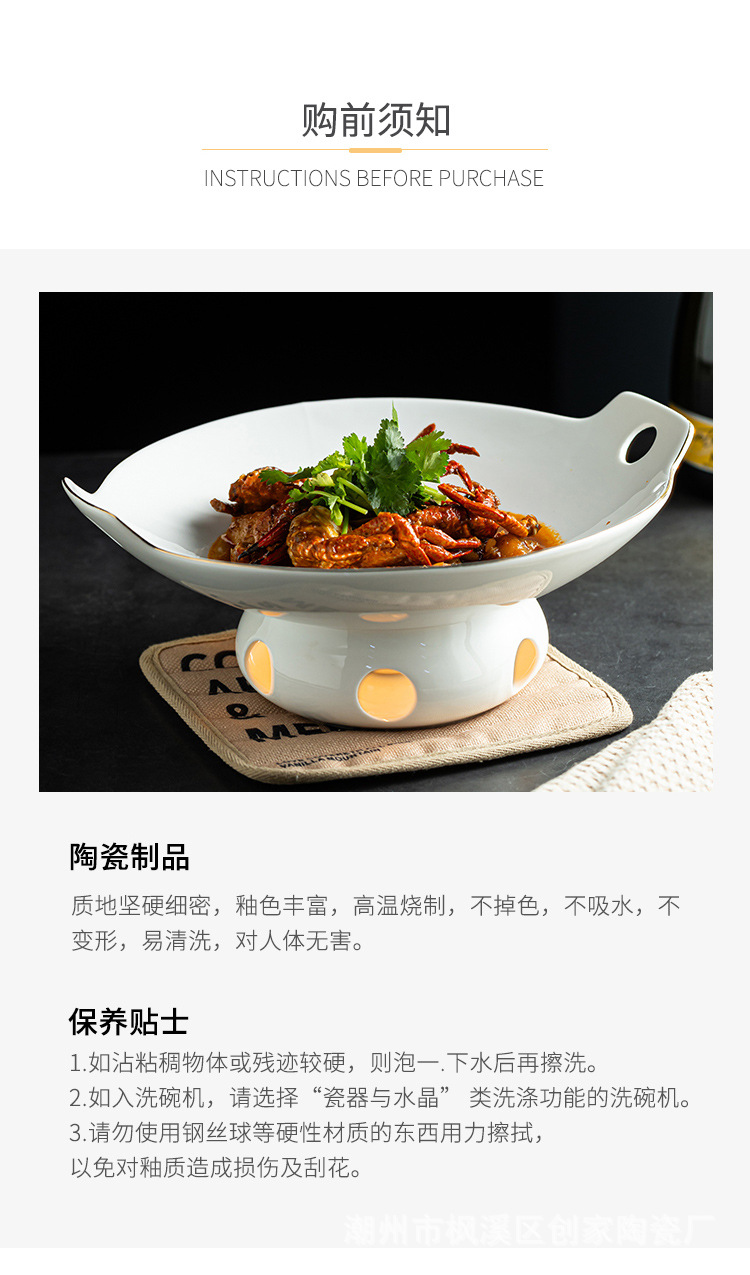 세라믹 건식 냄비 가열로 접시 수프 그릇 서양 음식 접시 레스토랑 둥근 양이 식기 촛불 오픈 스토브 상업용 수프 냄비스토어 가기