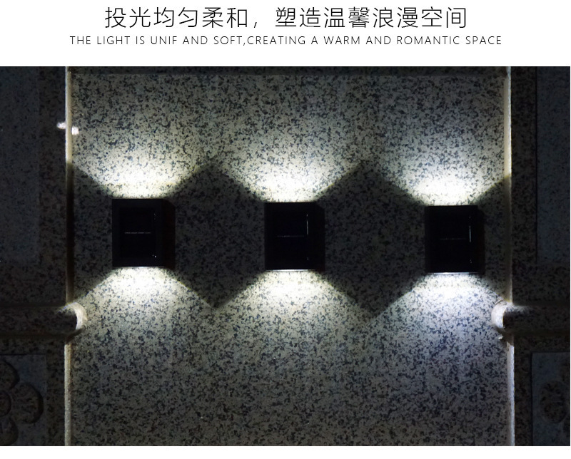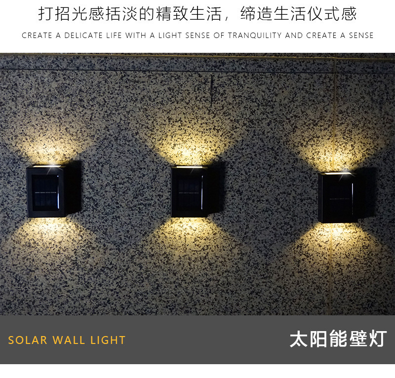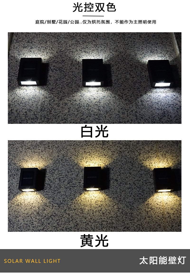 태양광 벽 조명, 야외 야간 조명, 빌라 안뜰 정원 벽 조명, 벽 세척 조명, 위아래로 이중 LED 조명