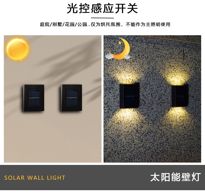 태양광 벽 조명, 야외 야간 조명, 빌라 안뜰 정원 벽 조명, 벽 세척 조명, 위아래로 이중 LED 조명스토어 가기
