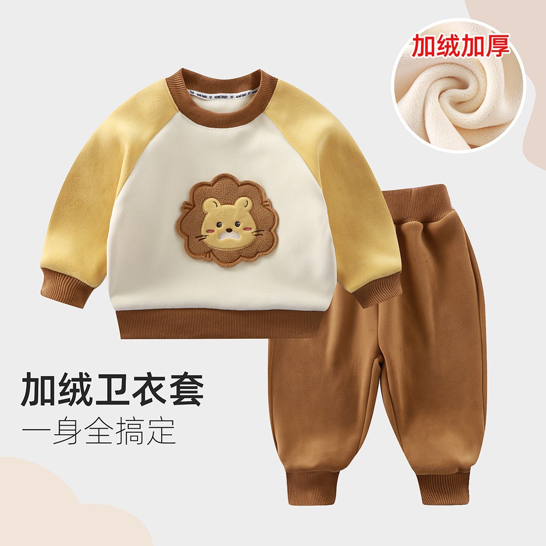 어린이 양털 스웨터 정장, 중소형 어린이 두꺼운 아기상의와 바지, 소년 소녀 겨울 투피스 세트 도매스토어 가기