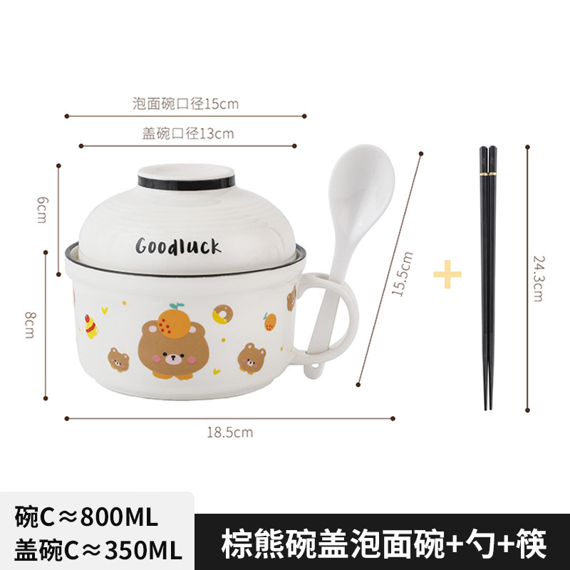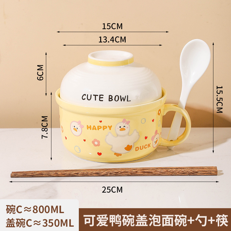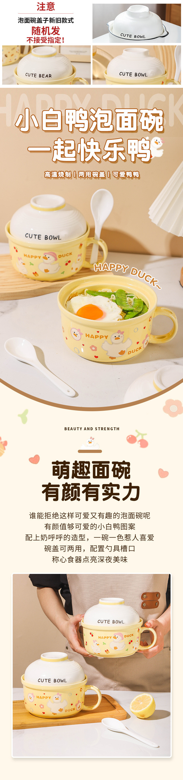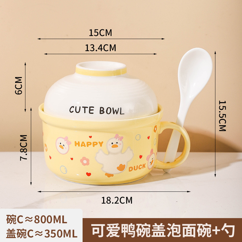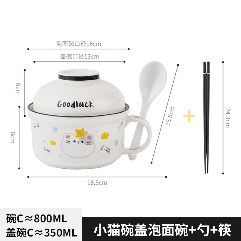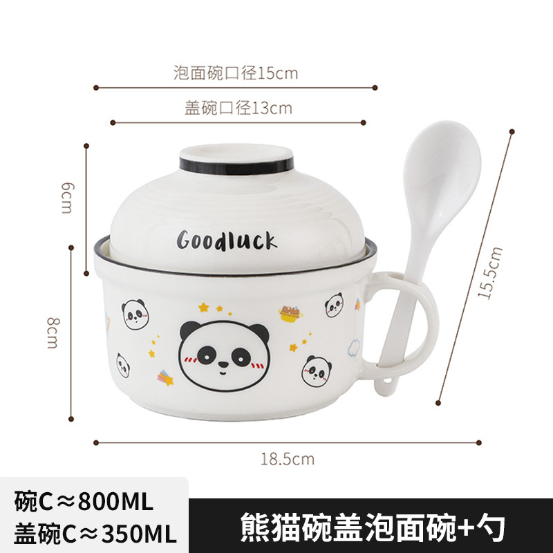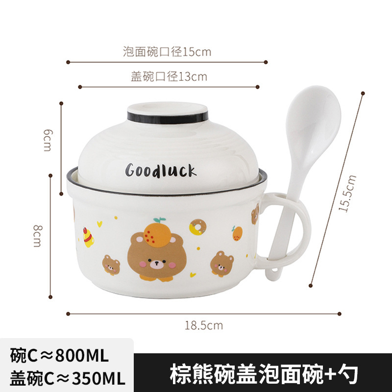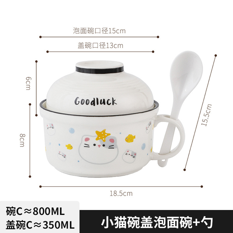 뚜껑이 있는 세라믹 라면그릇, 스푼, 국그릇, 전자레인지 사용 가능, 학생기숙사 밥그릇, 라면그릇, 직장인 도시락