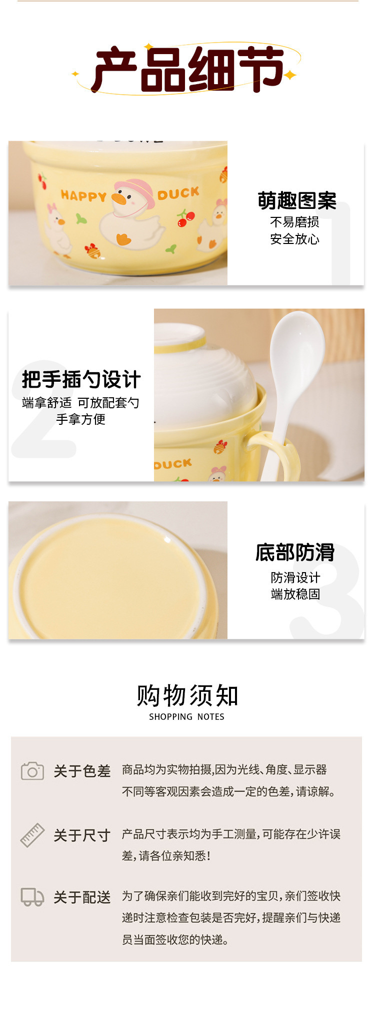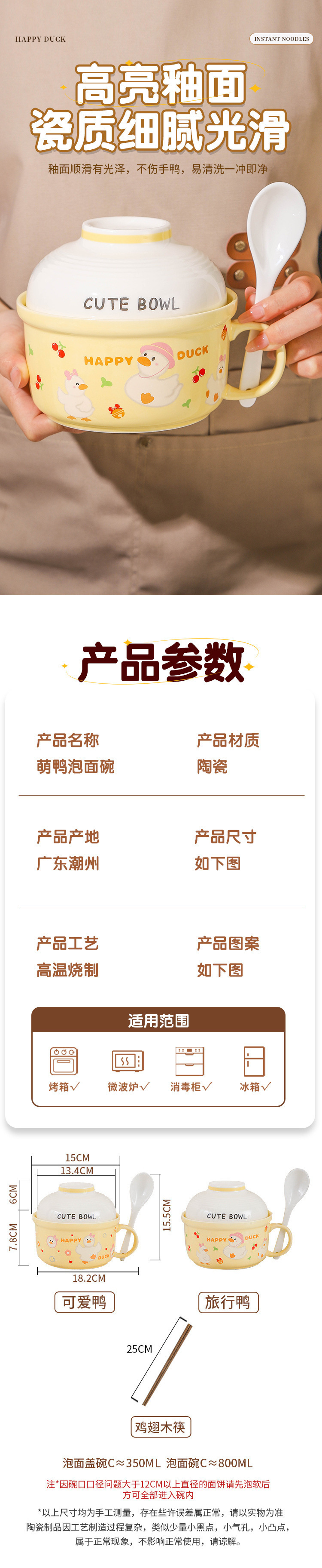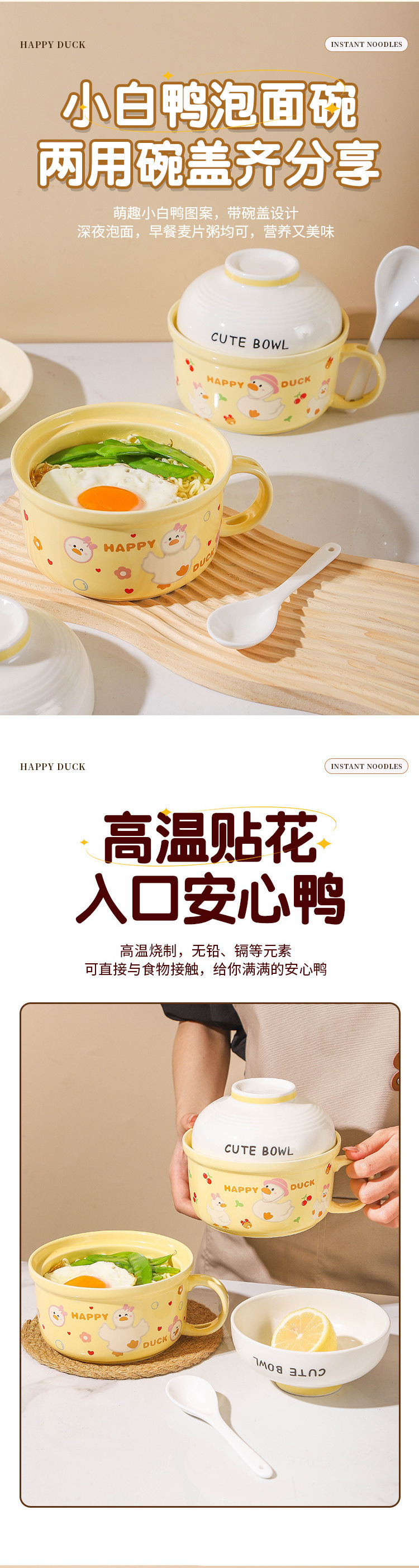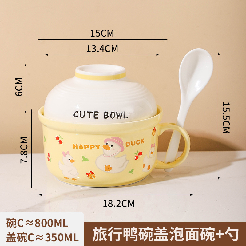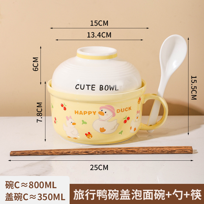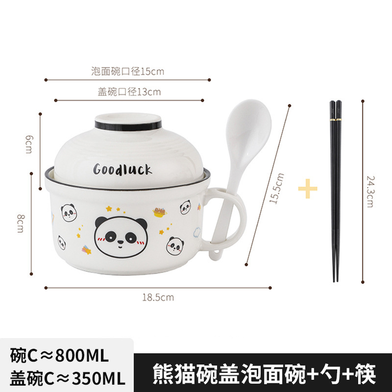 뚜껑이 있는 세라믹 라면그릇, 스푼, 국그릇, 전자레인지 사용 가능, 학생기숙사 밥그릇, 라면그릇, 직장인 도시락