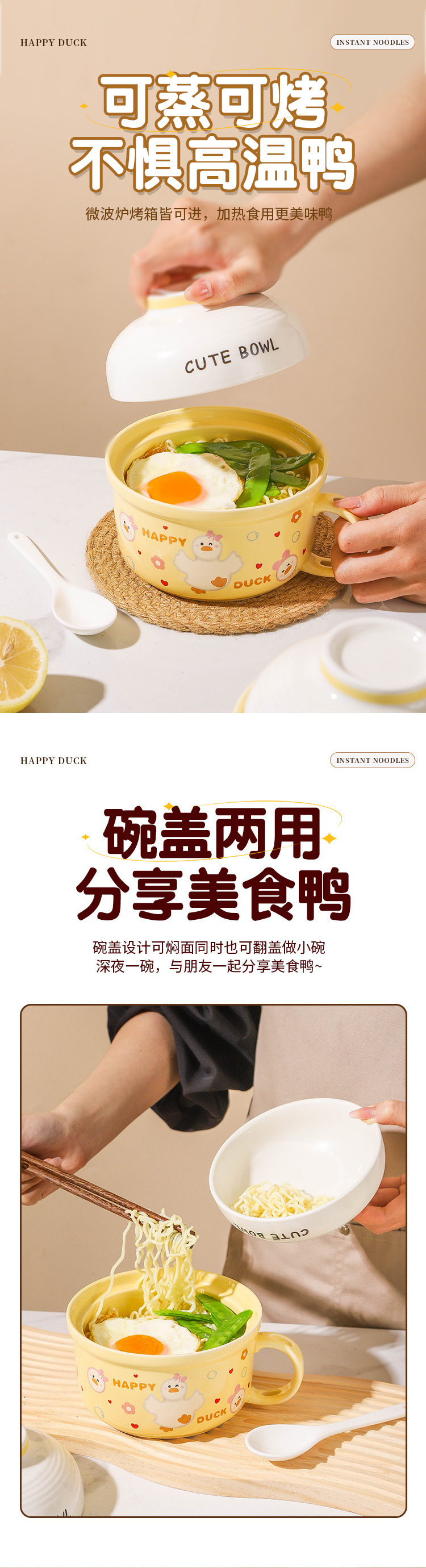 뚜껑이 있는 세라믹 라면그릇, 스푼, 국그릇, 전자레인지 사용 가능, 학생기숙사 밥그릇, 라면그릇, 직장인 도시락스토어 가기