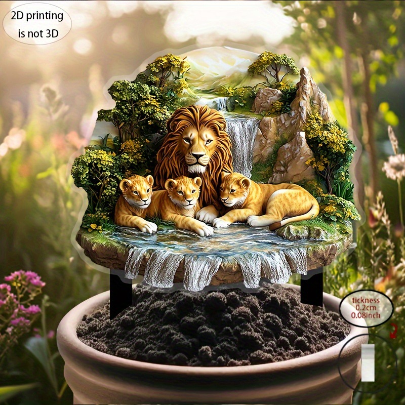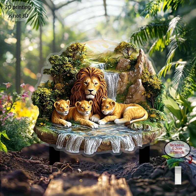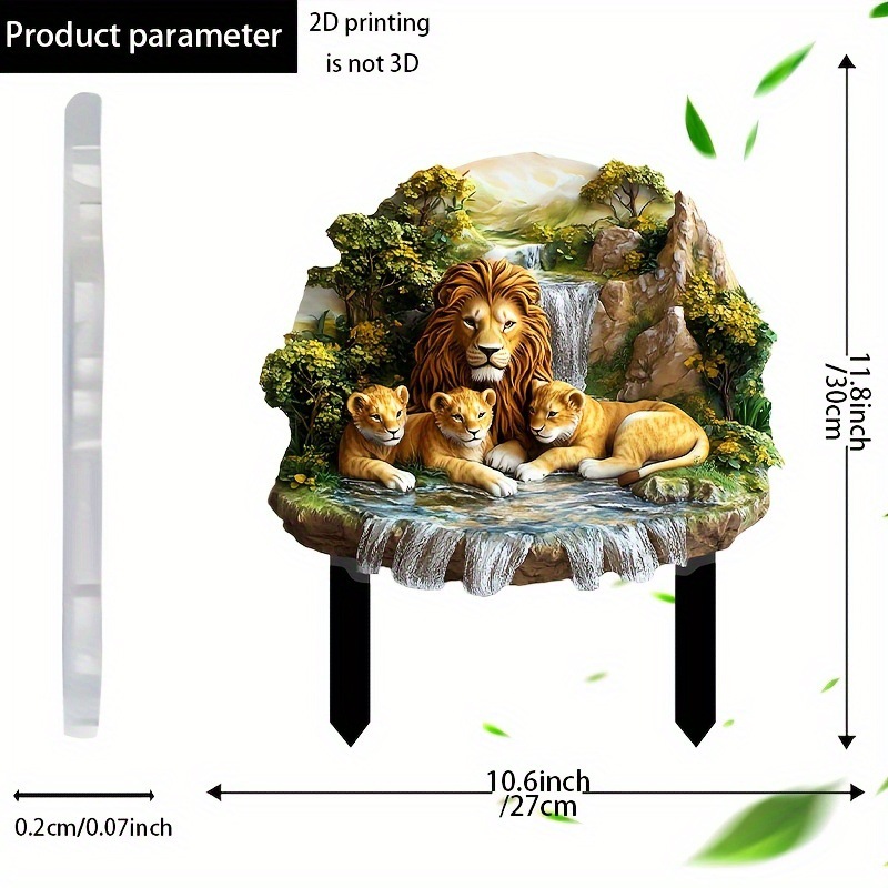 [플랫] 빈티지 사자 가족 정원 표시 - 10.6"x11.8" 아크릴 장식 플레이트, 적용 가능스토어 가기