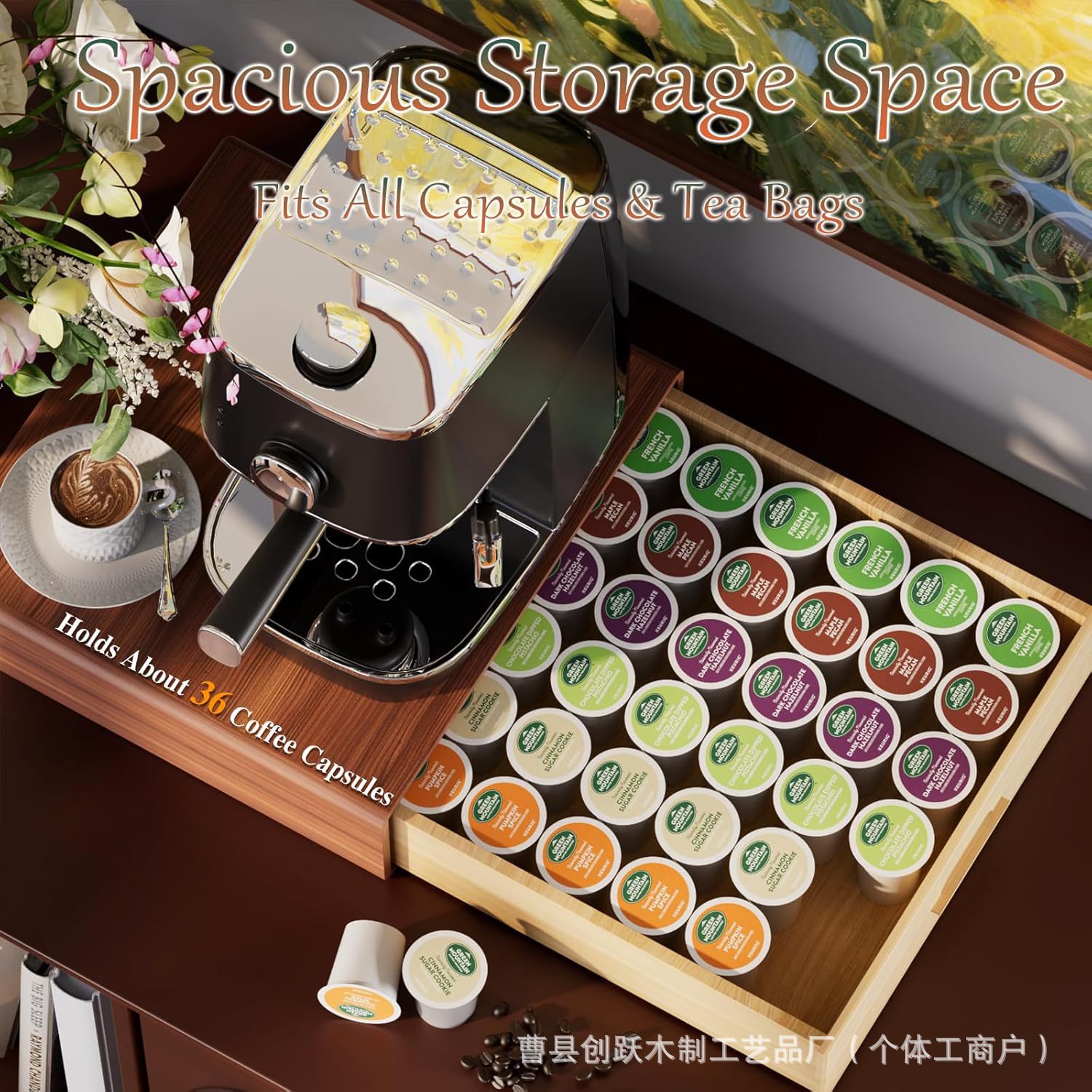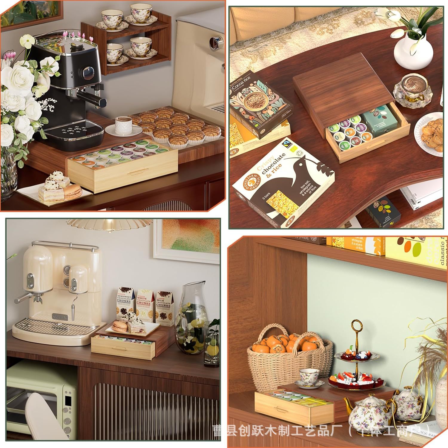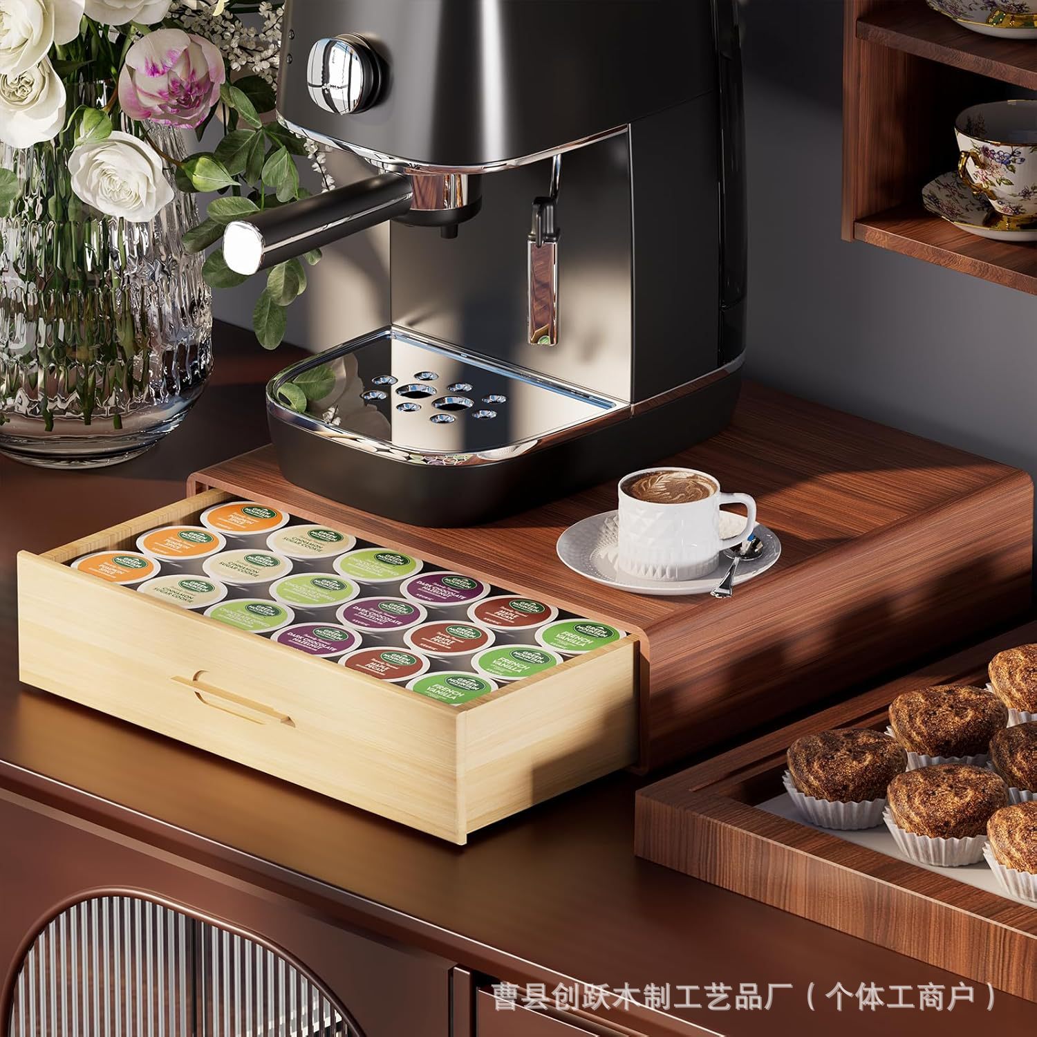 나무 커피 캡슐 보관 브래킷 데스크탑 카운터 커피 머신 보관 랙 커피 바 액세서리 기본 보관 랙