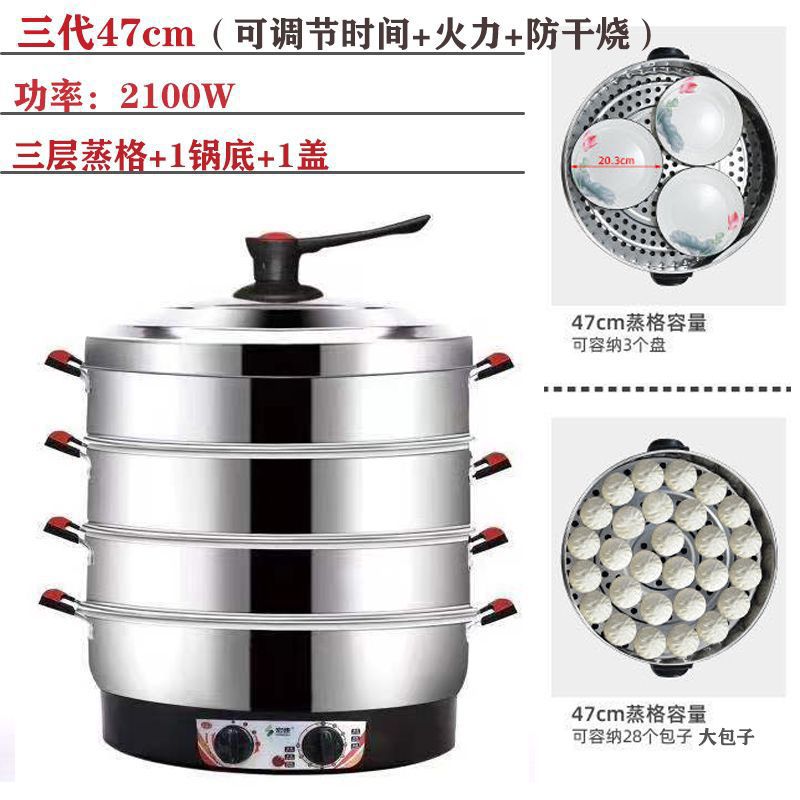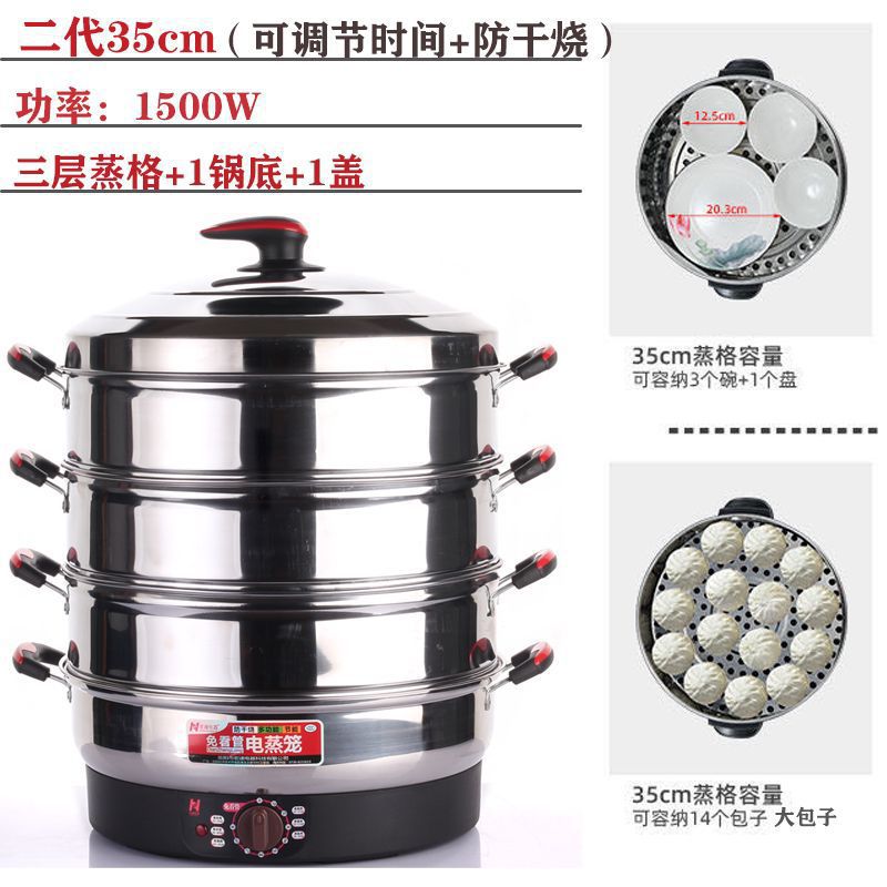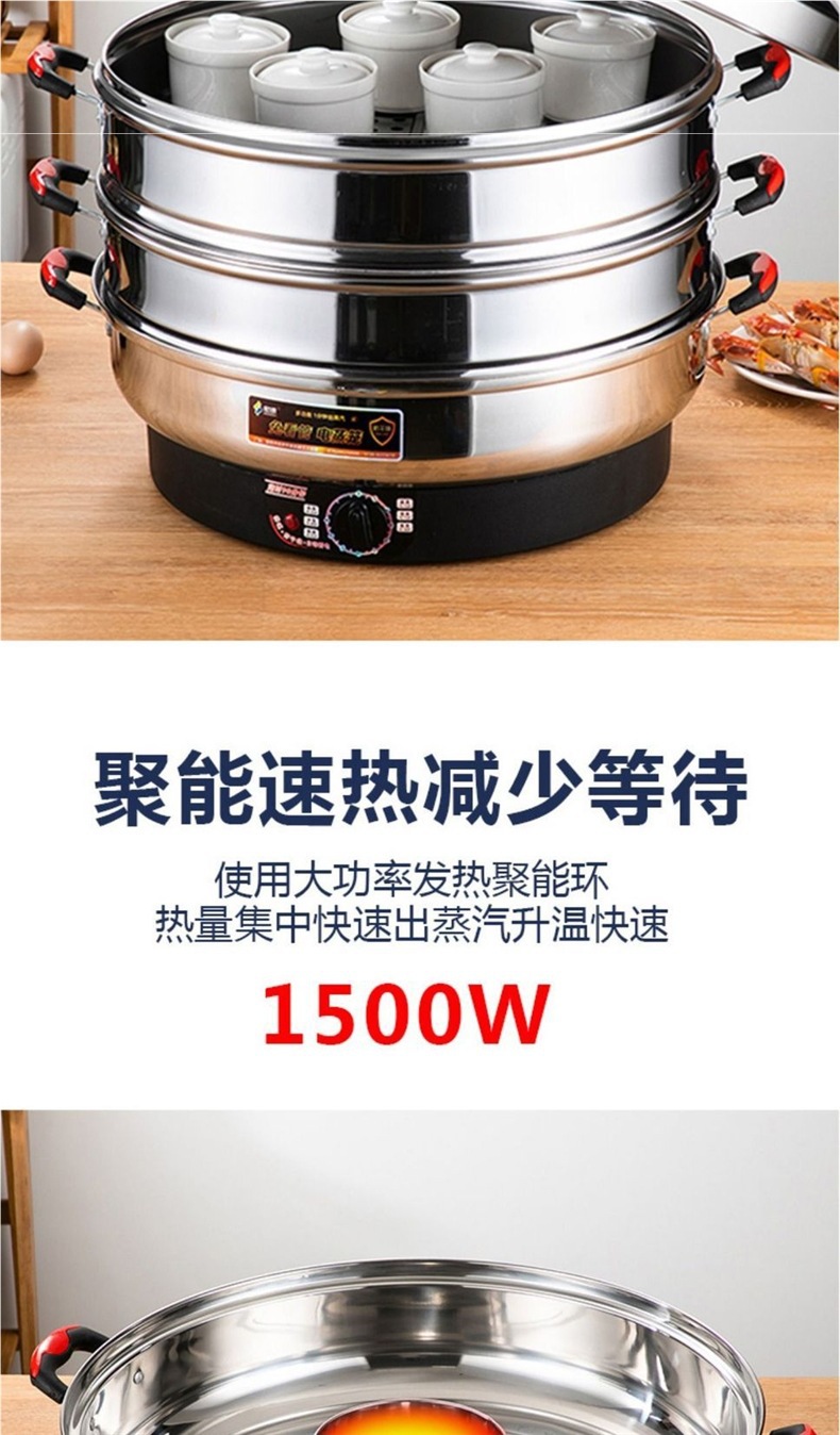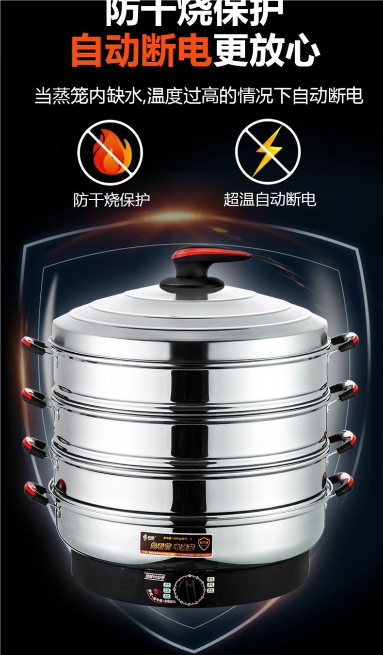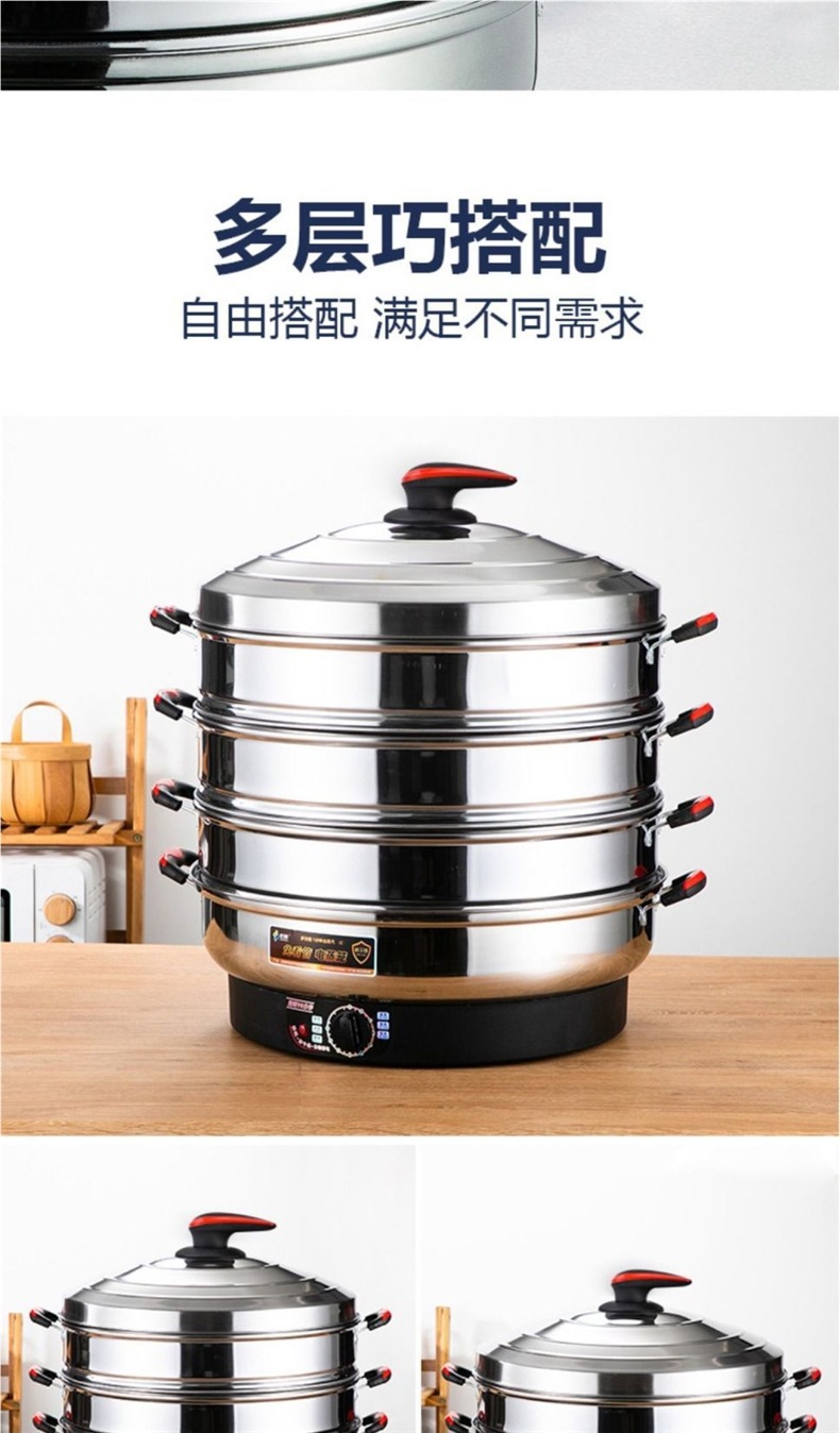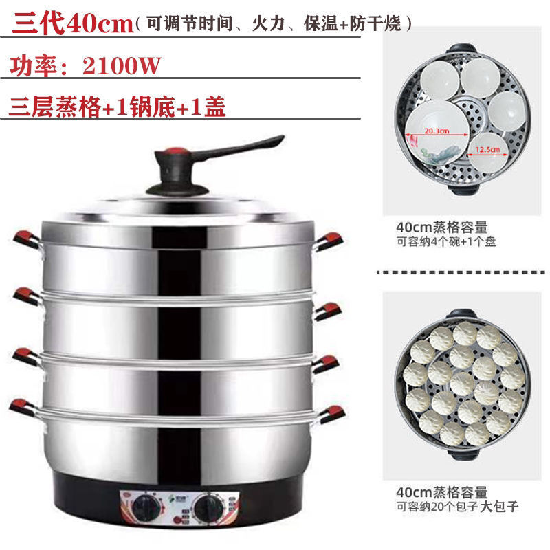 전기 찜통 다기능 가정용 대용량 전기 찜통 두꺼운 스테인레스 스틸 3 층 타이머 절연 자동 전원 끄기