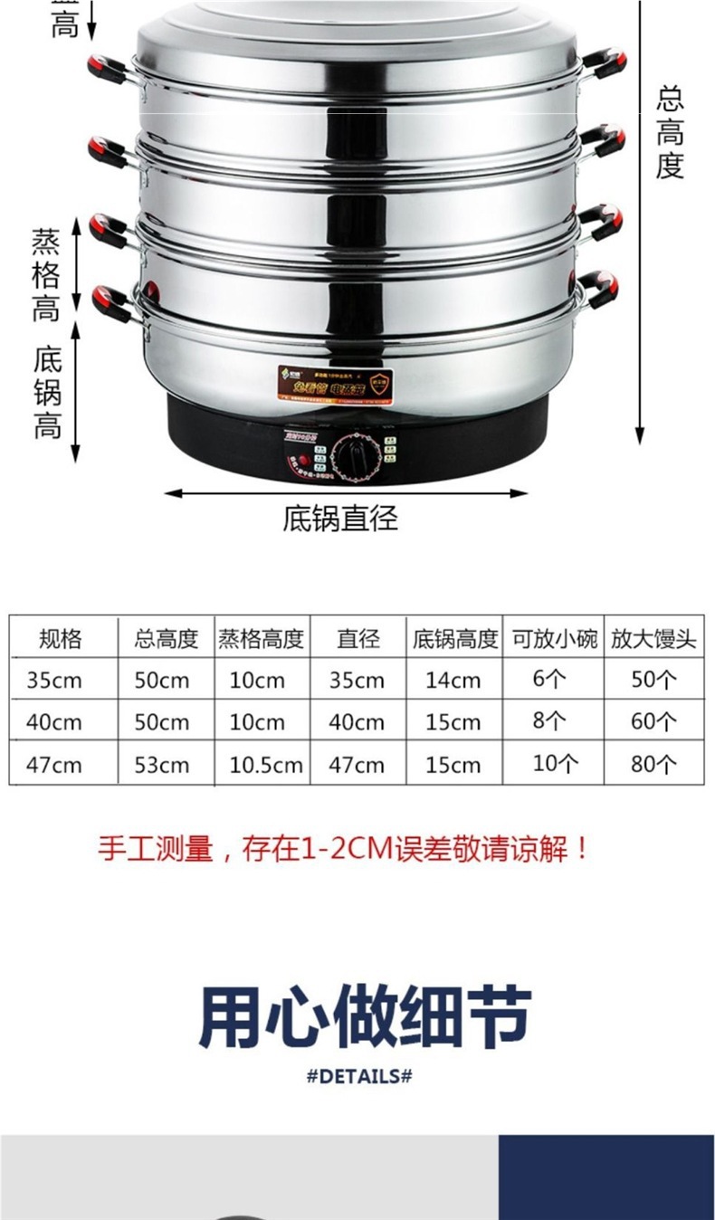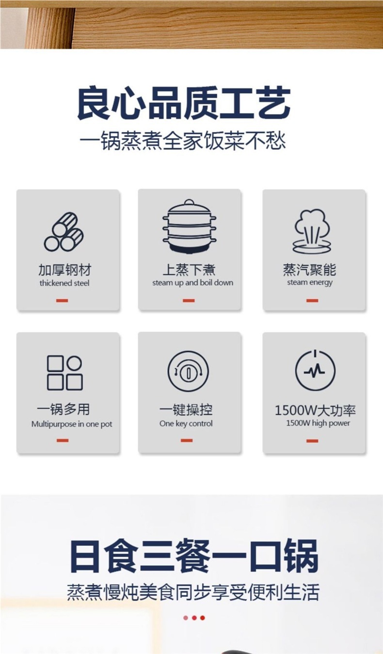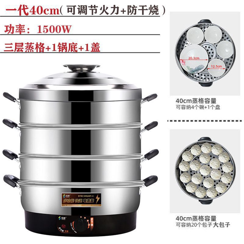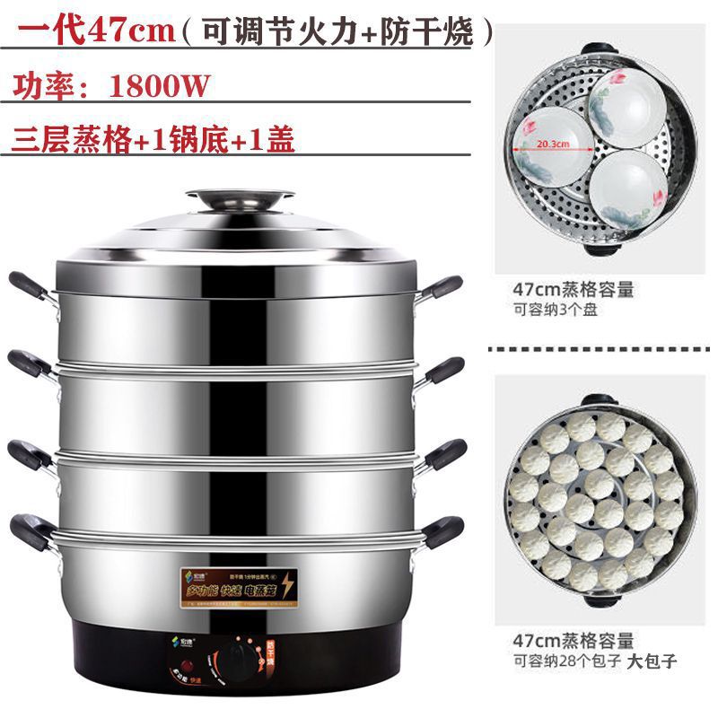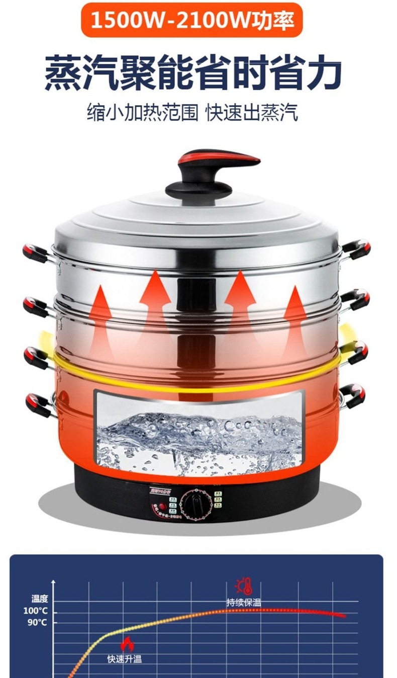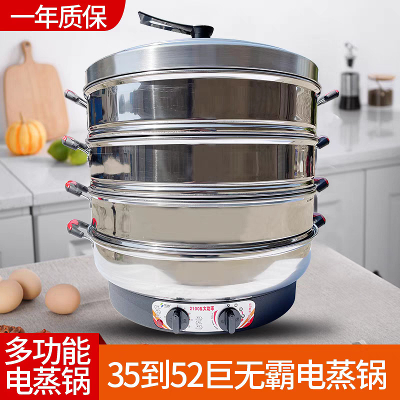 전기 찜통 다기능 가정용 대용량 전기 찜통 두꺼운 스테인레스 스틸 3 층 타이머 절연 자동 전원 끄기