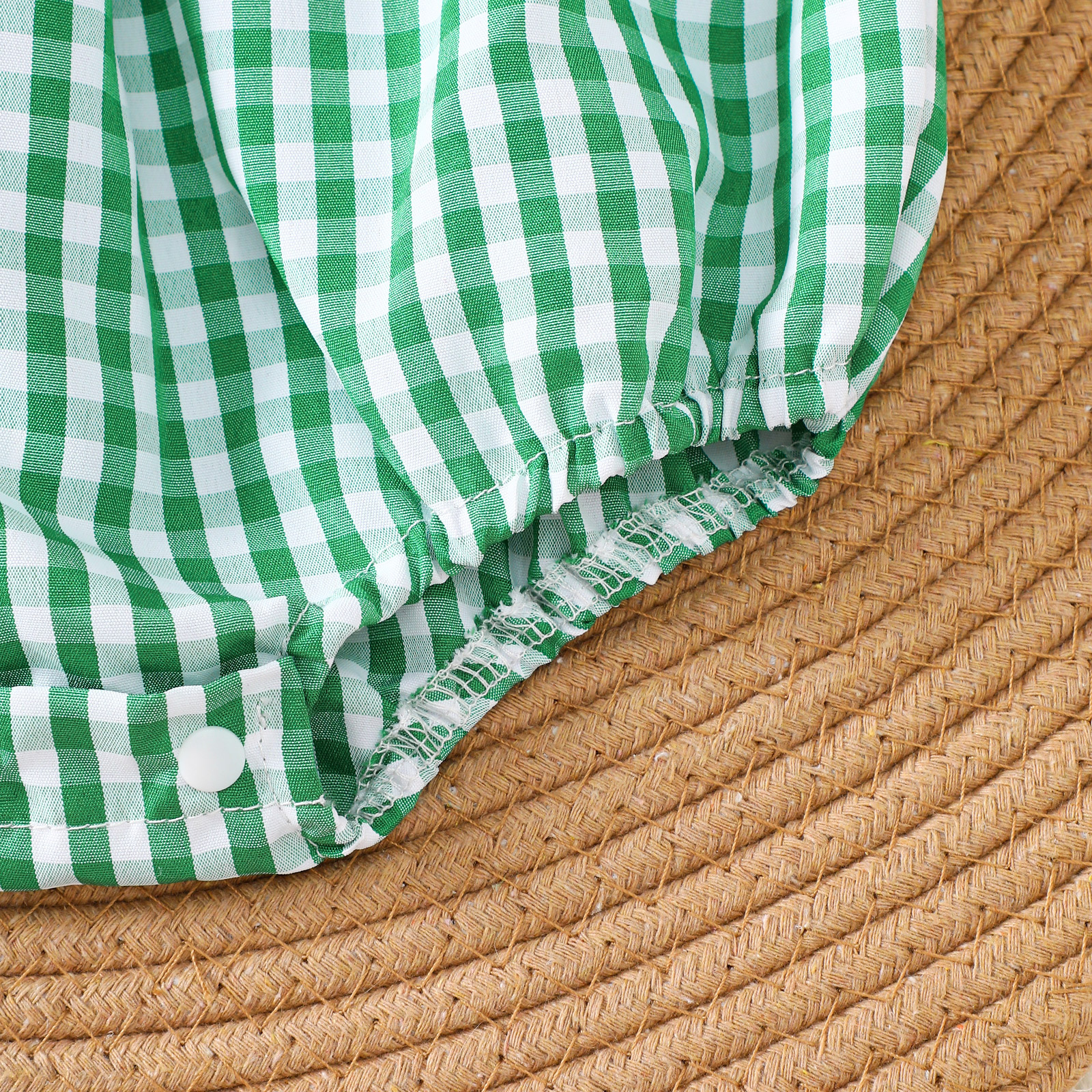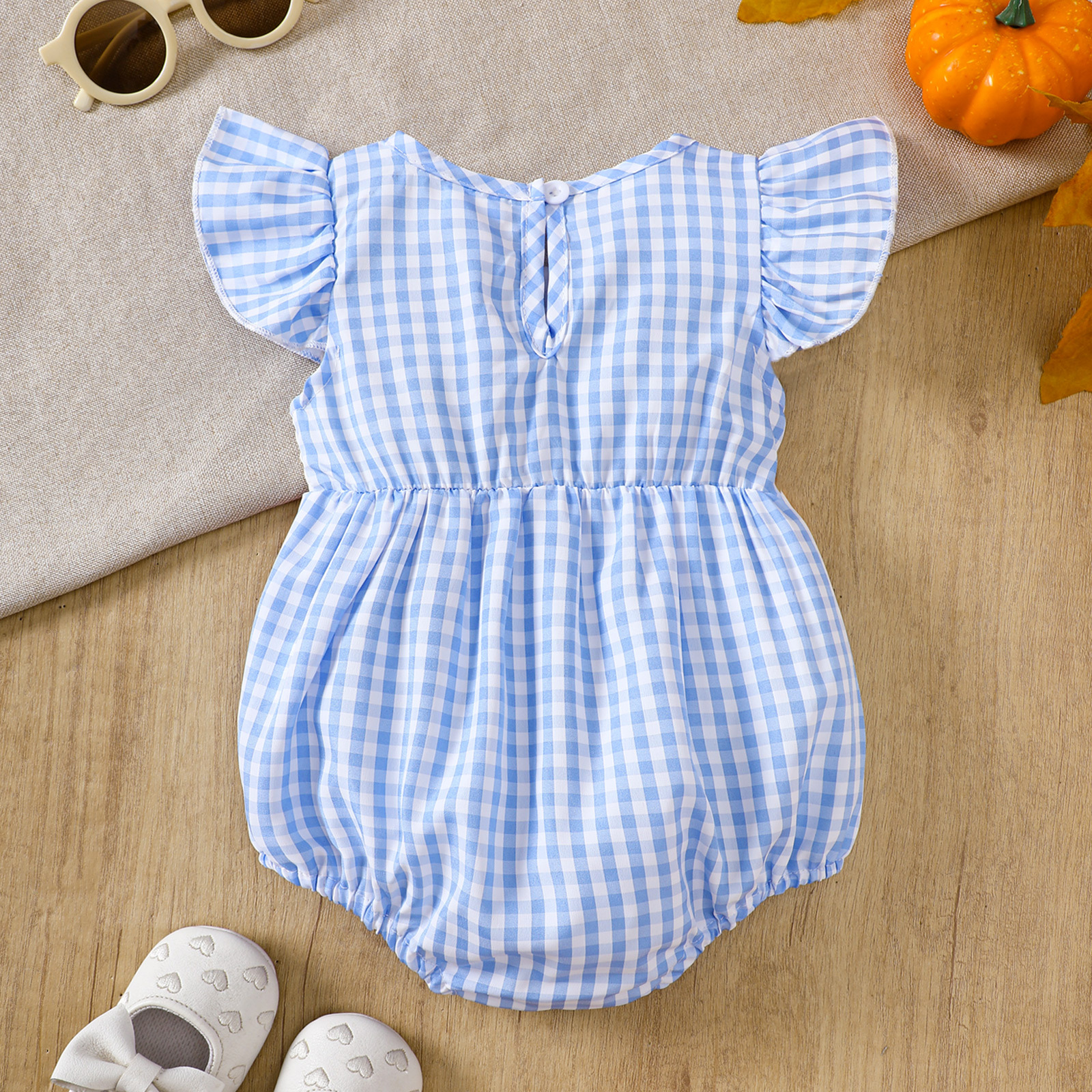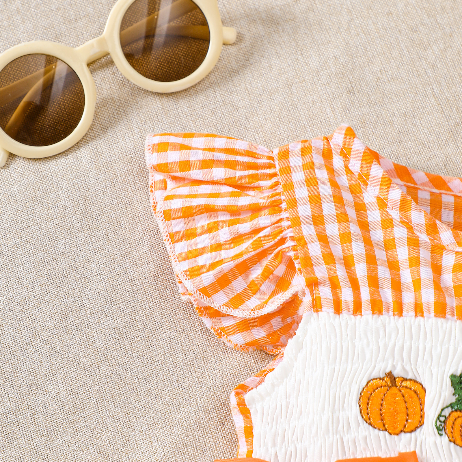 2025 새로운 여름 아기 반팔 격자 무늬 크리스마스 트리 자수 가운 할로윈 호박 자수 점프 슈트