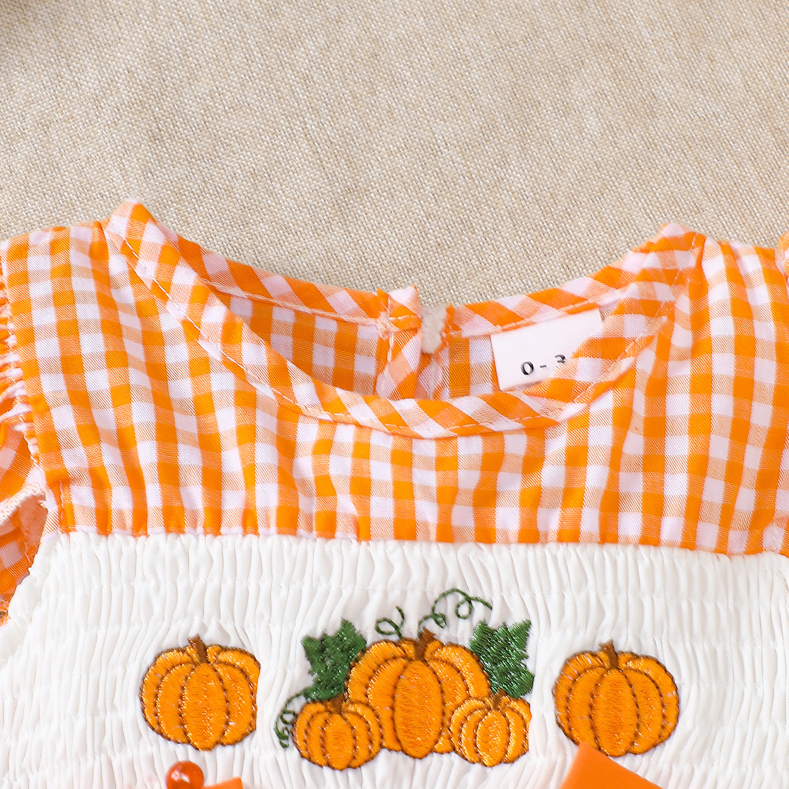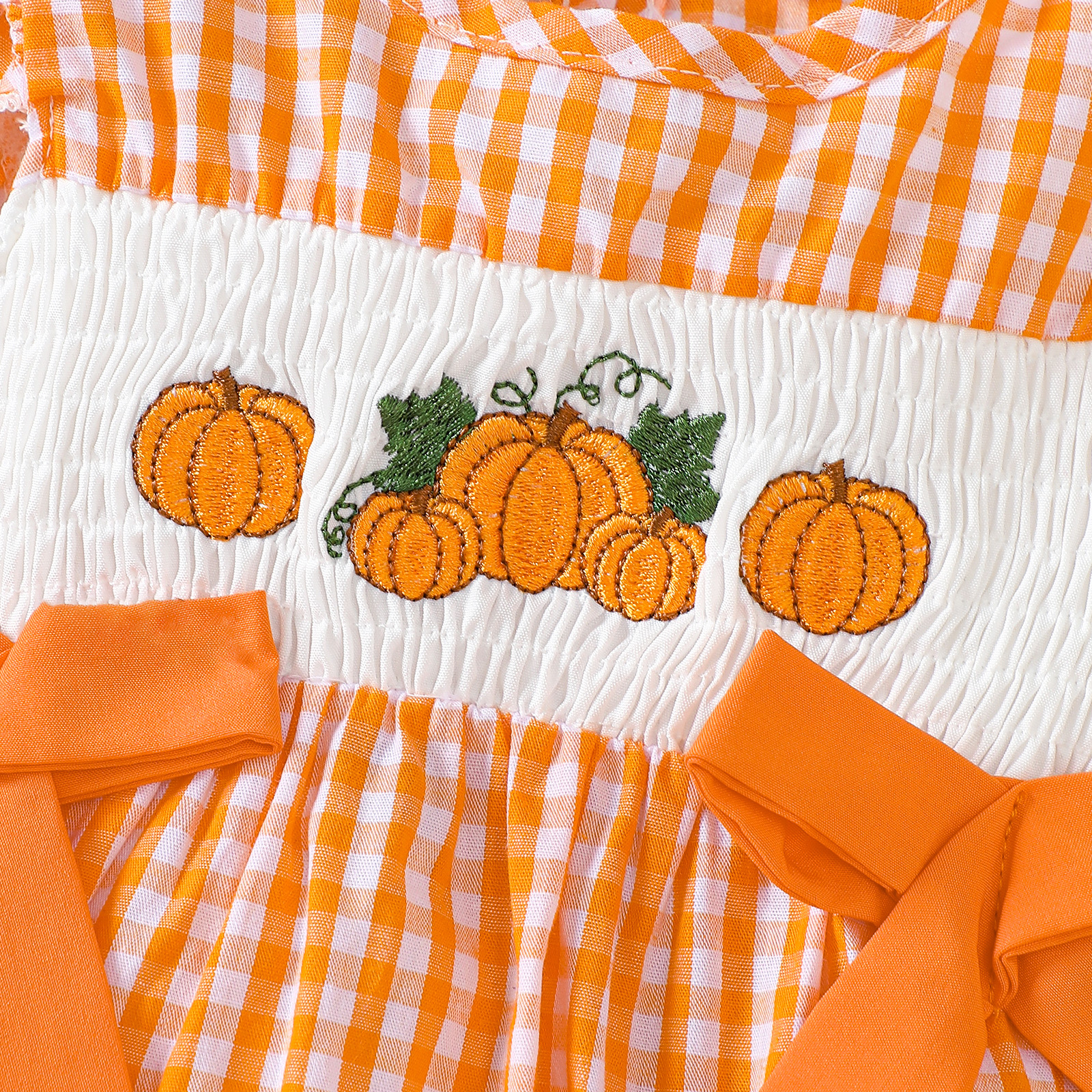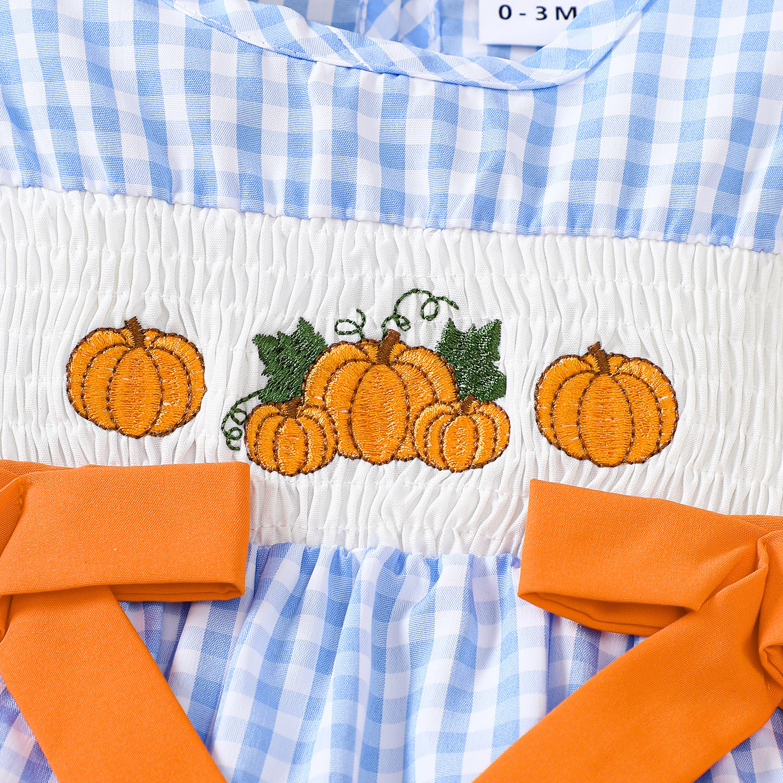 2025 새로운 여름 아기 반팔 격자 무늬 크리스마스 트리 자수 가운 할로윈 호박 자수 점프 슈트스토어 가기